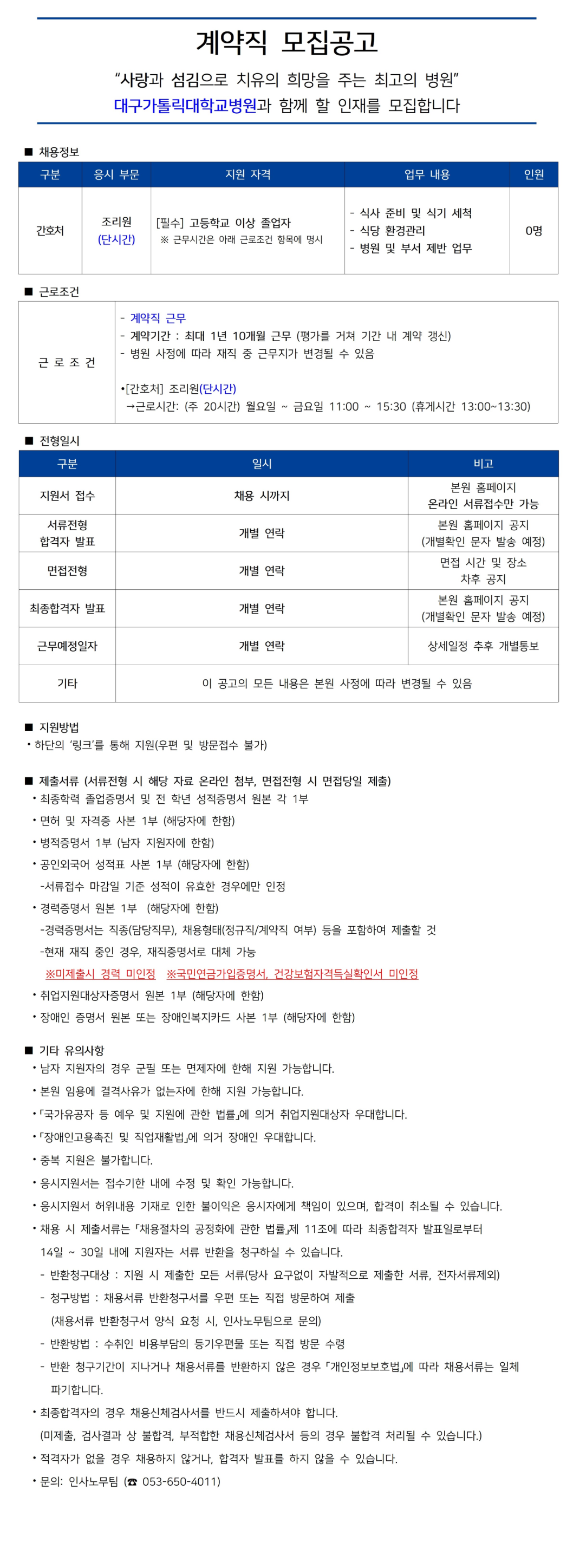 [°£È£Ã³] Á¶¸®¿ø(´Ü½Ã°£) °ø°³Ã¤¿ë