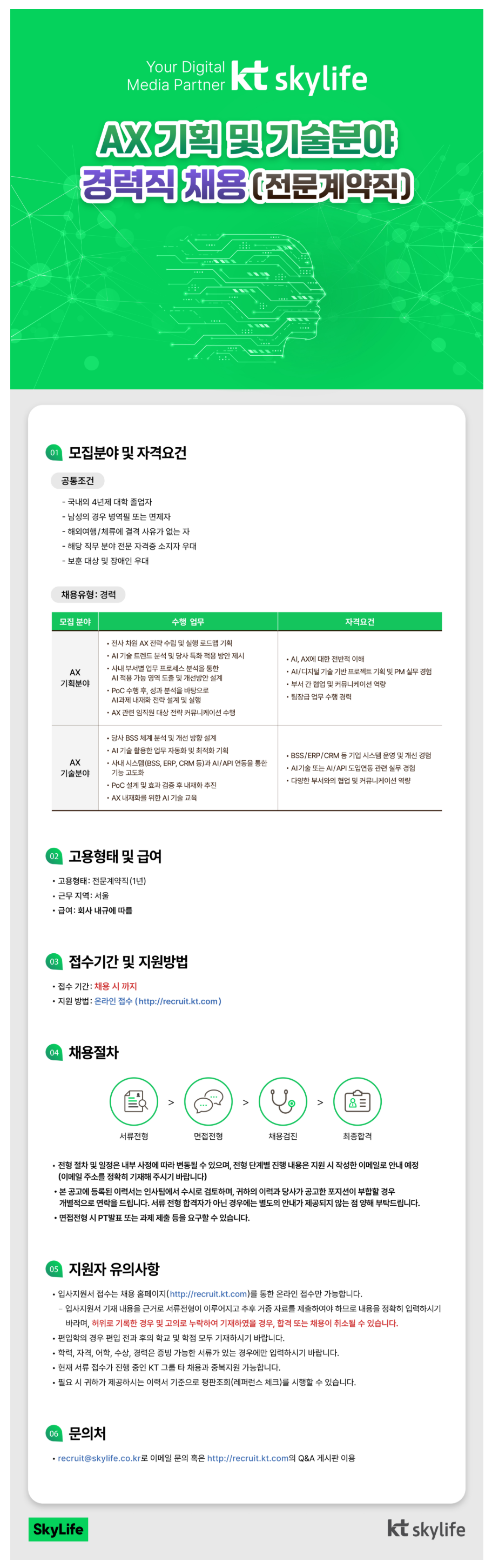 [kt skylife] AX ±âȹ ¹× ±â¼ú ºÐ¾ß °æ·ÂÁ÷ ä¿ë