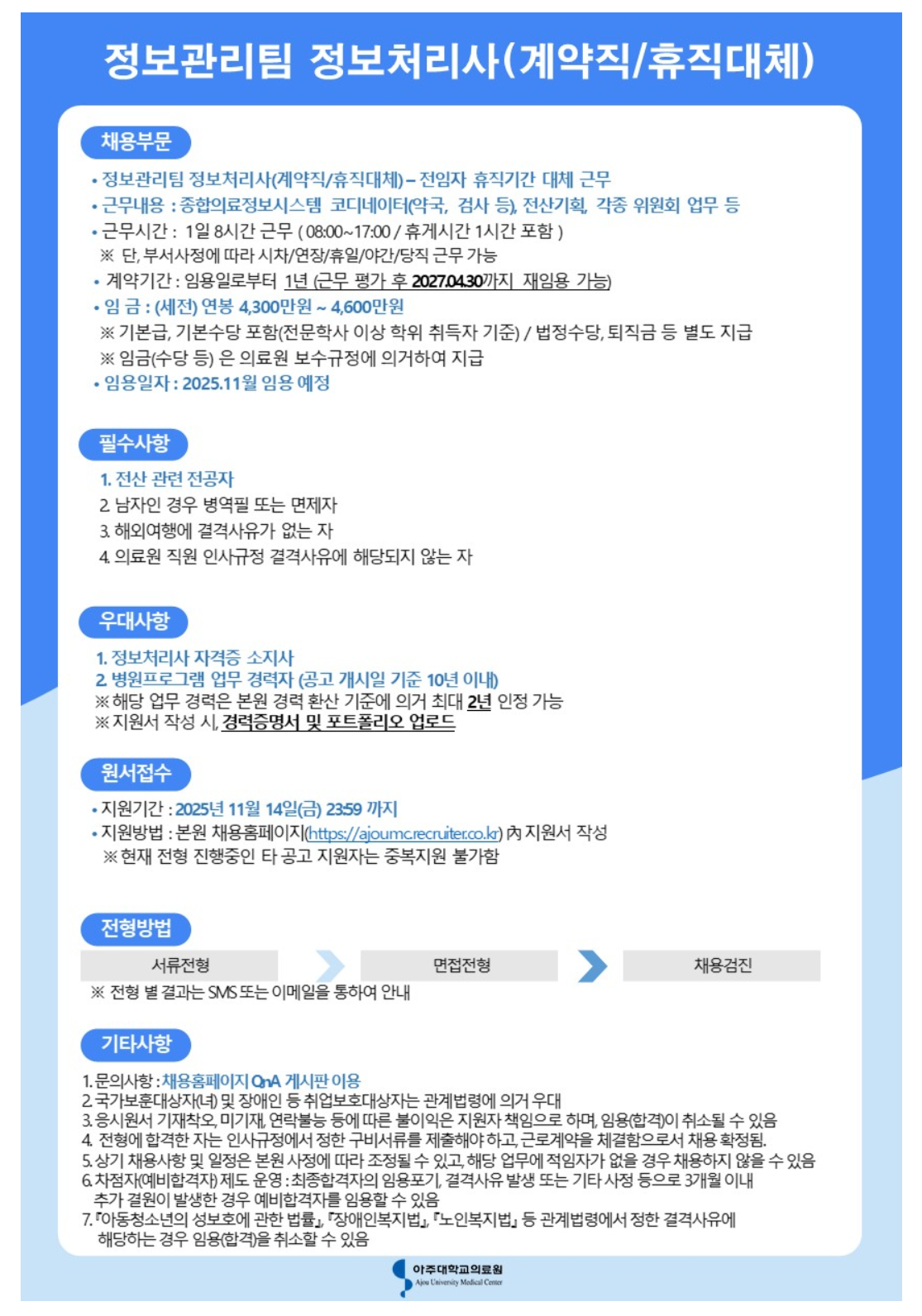 Á¤º¸°ü¸®ÆÀ Á¤º¸Ã³¸®»ç(°è¾àÁ÷/ÈÞÁ÷´ëü)