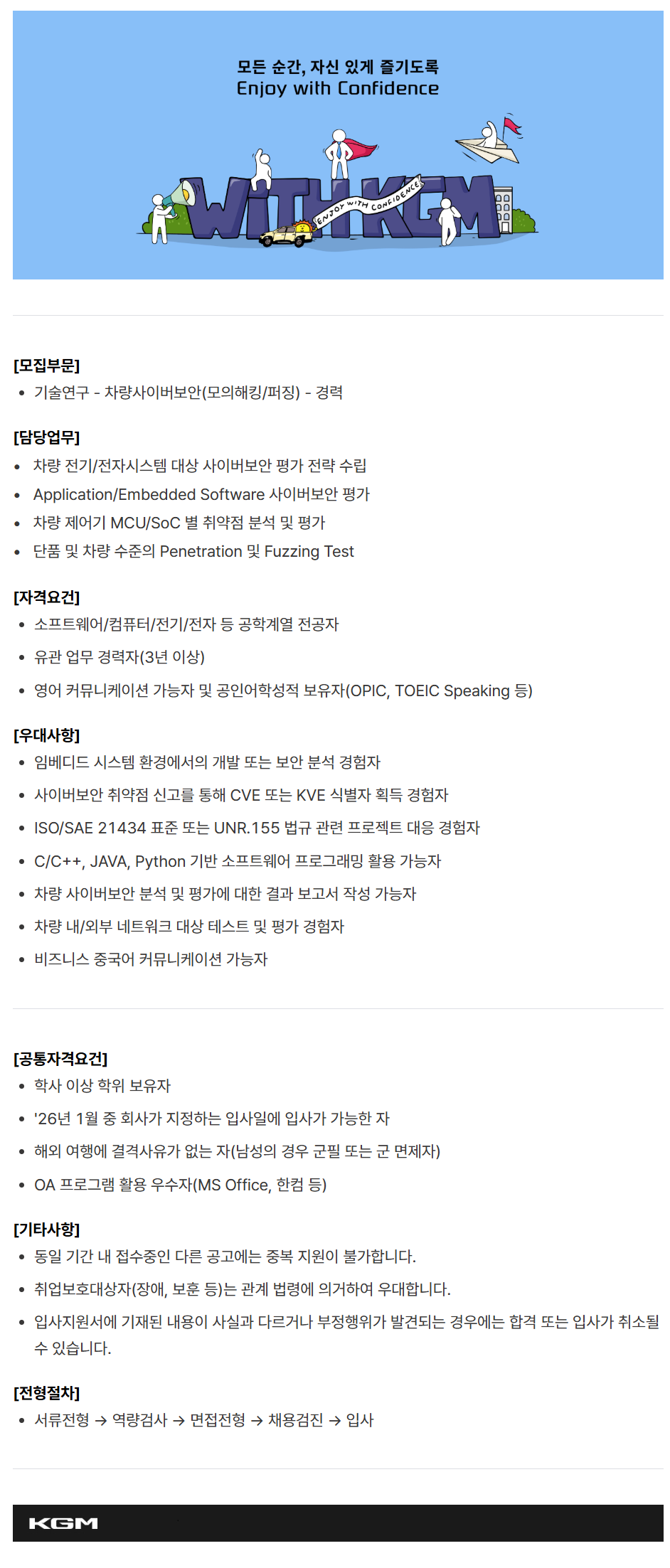 ISO/SAE 21434 Ç¥ÁØ ¶Ç´Â UNR.155 ¹ý±Ô °ü·Ã ÇÁ·ÎÁ§Æ® ´ëÀÀ °æÇèÀÚ