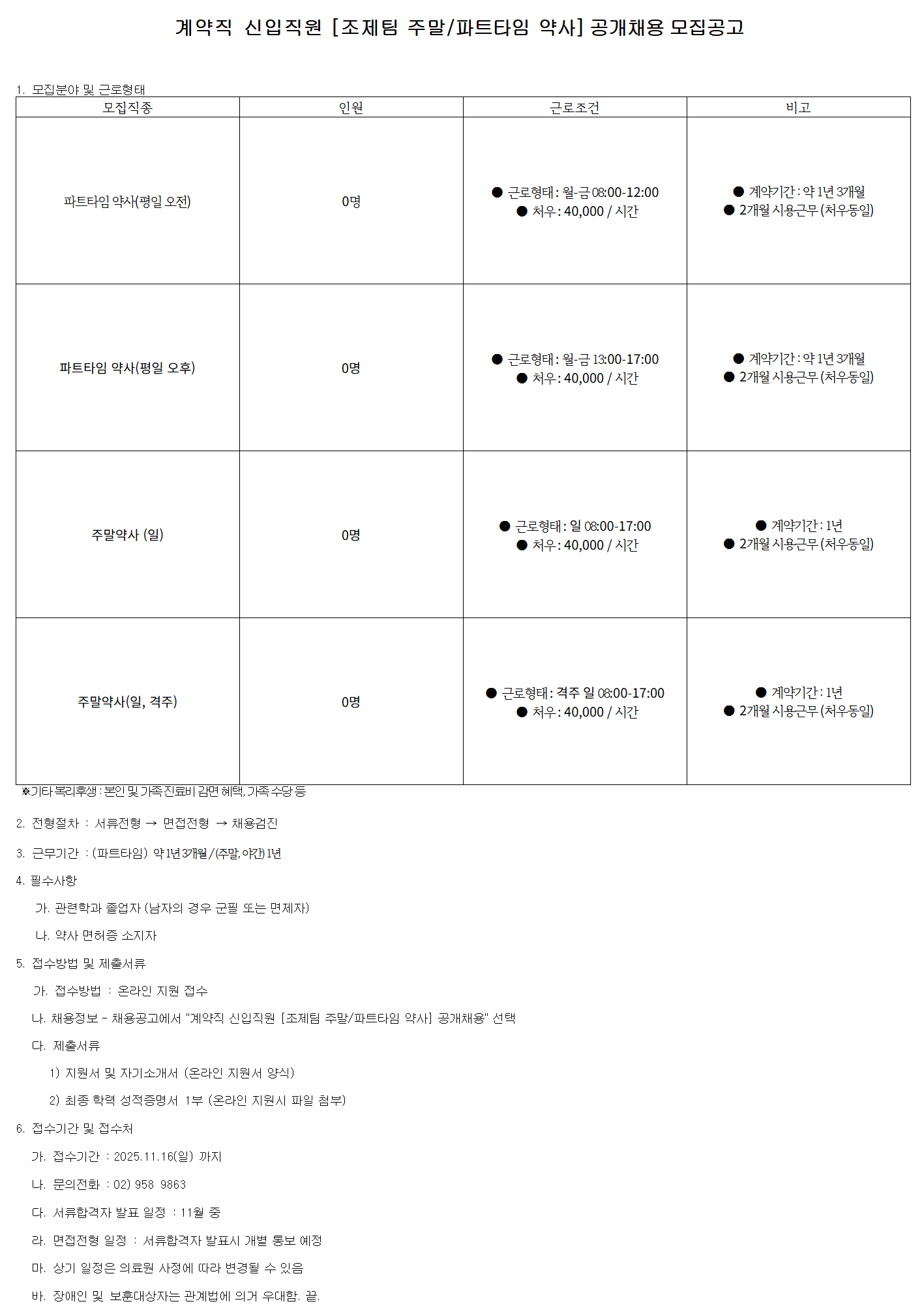 ³ª. ä¿ëÁ¤º¸ - ä¿ë°ø°í¿¡¼ "°è¾àÁ÷ ½ÅÀÔÁ÷¿ø [Á¶Á¦ÆÀ ÁÖ¸»/ÆÄƮŸÀÓ ¾à»ç] °ø°³Ã¤¿ë" ¼±ÅÃ