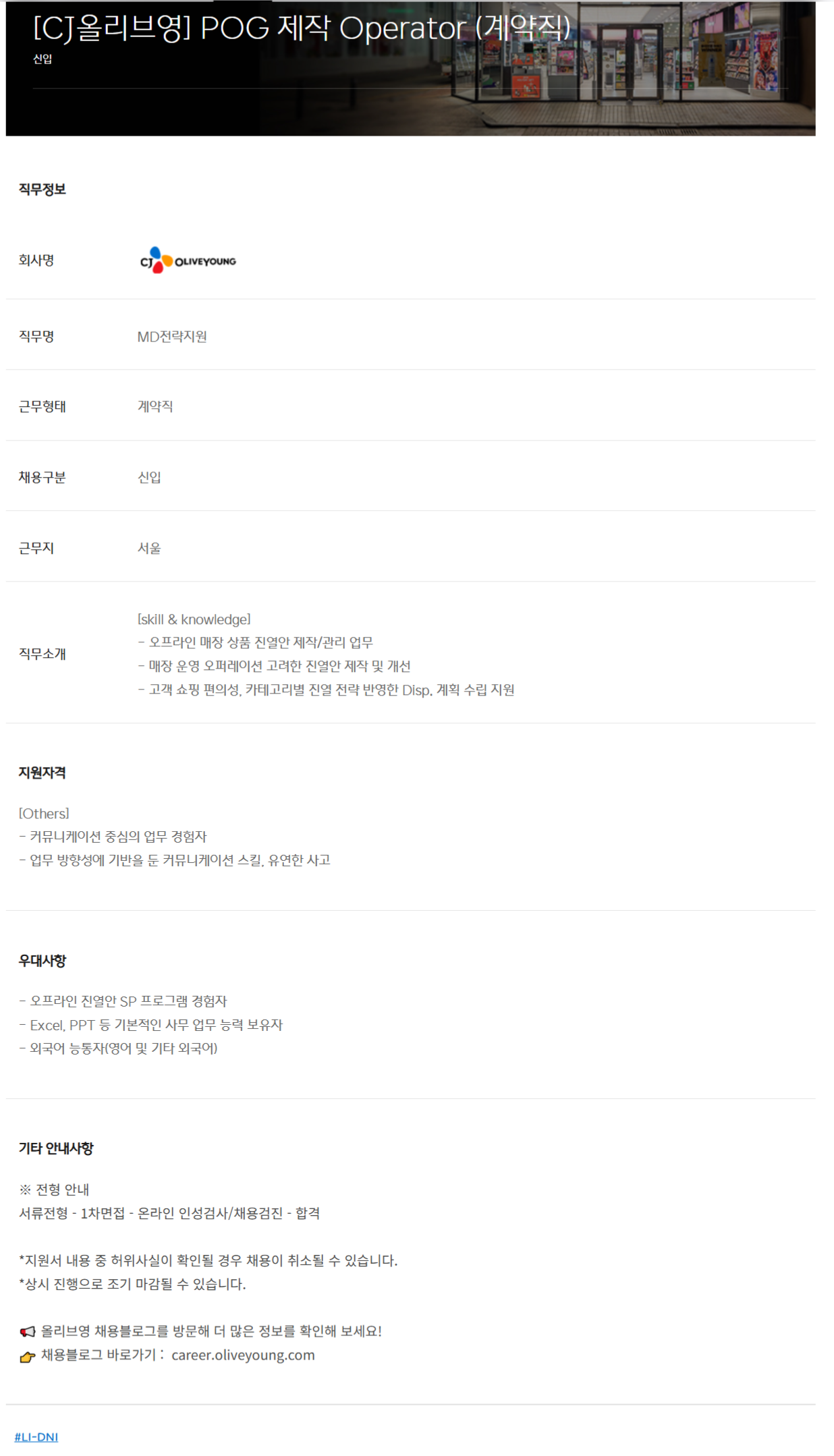 [CJ¿Ã¸®ºê¿µ] POG Á¦ÀÛ Operator (°è¾àÁ÷)