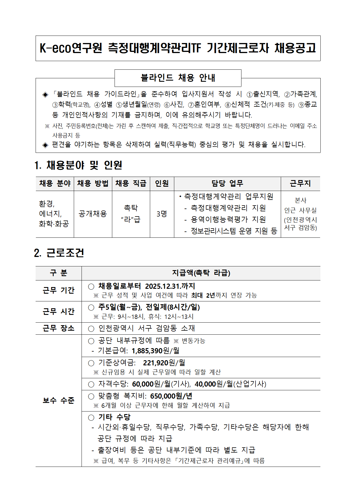 Çѱ¹È¯°æ°ø´Ü(º»»ç) K-eco¿¬±¸¿ø ÃøÁ¤´ëÇà°è¾à°ü¸®TFÆÀ ±â°£Á¦±Ù·ÎÀÚ(ÃËŹ¡®¶ó¡¯±Þ)ä¿ë °ø°í