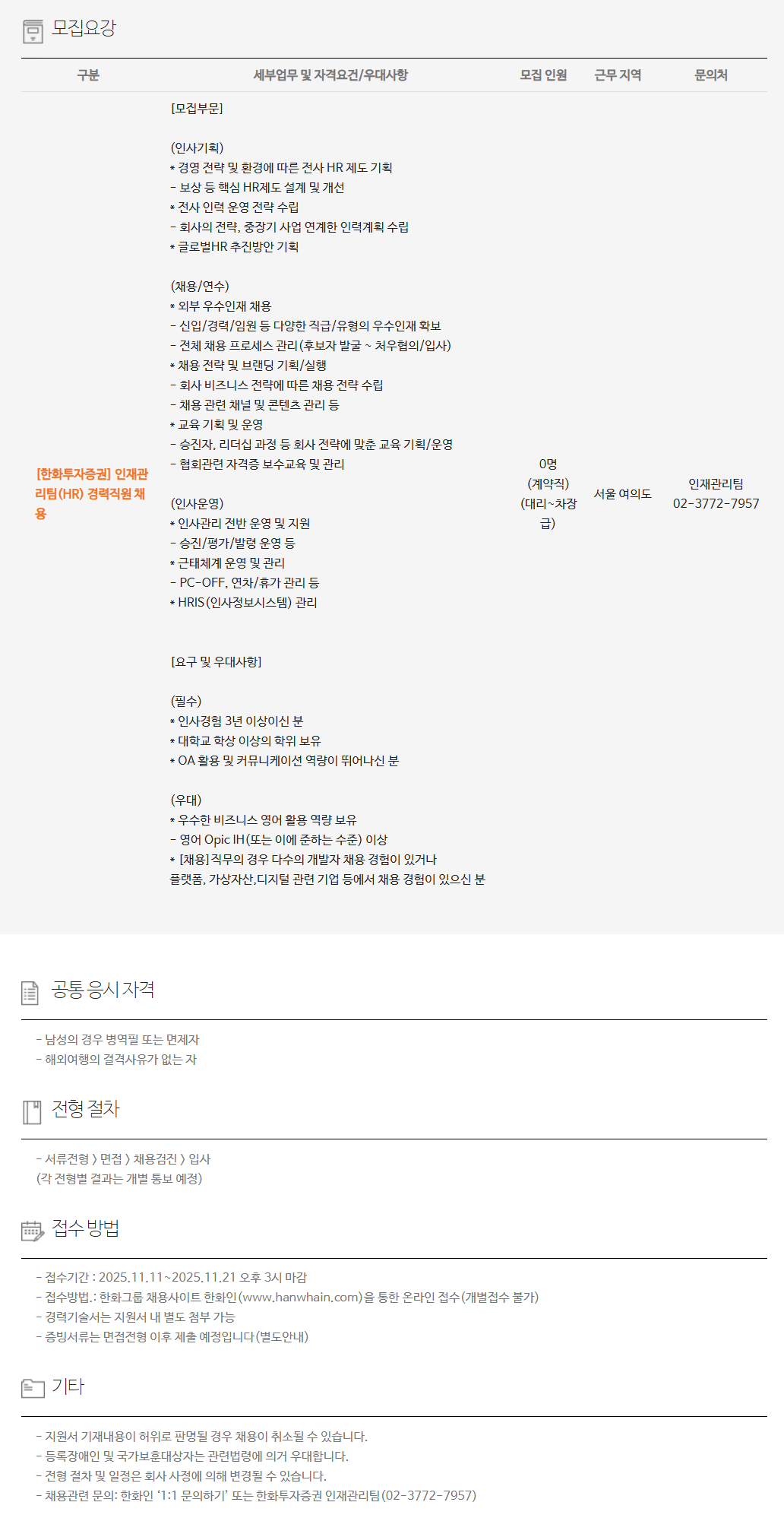 [ÇÑÈÅõÀÚÁõ±Ç] ÀÎÀç°ü¸®ÆÀ(HR) °æ·ÂÁ÷¿ø ä¿ë [¸ðÁýºÎ¹®]