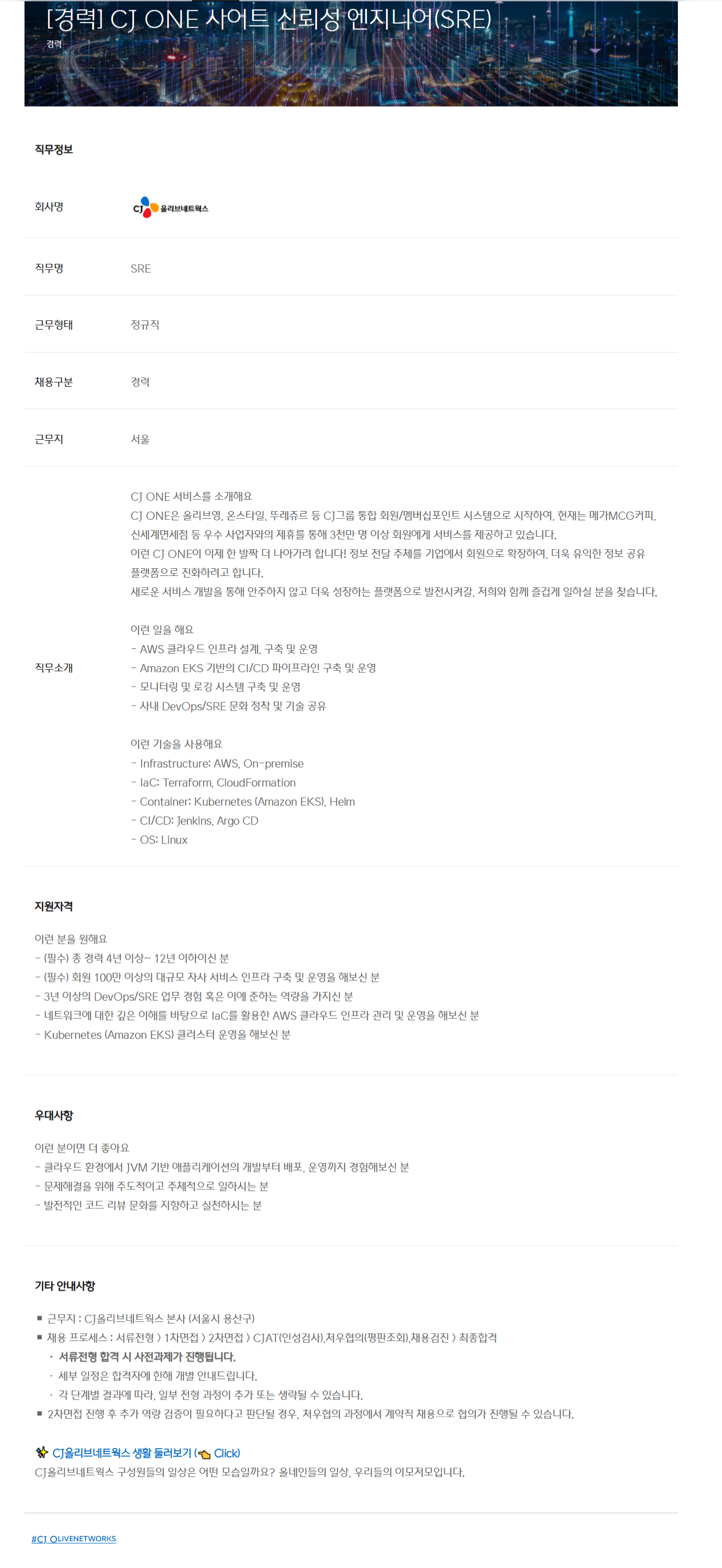 [°æ·Â] CJ ONE »çÀÌÆ® ½Å·Ú¼º ¿£Áö´Ï¾î(SRE)