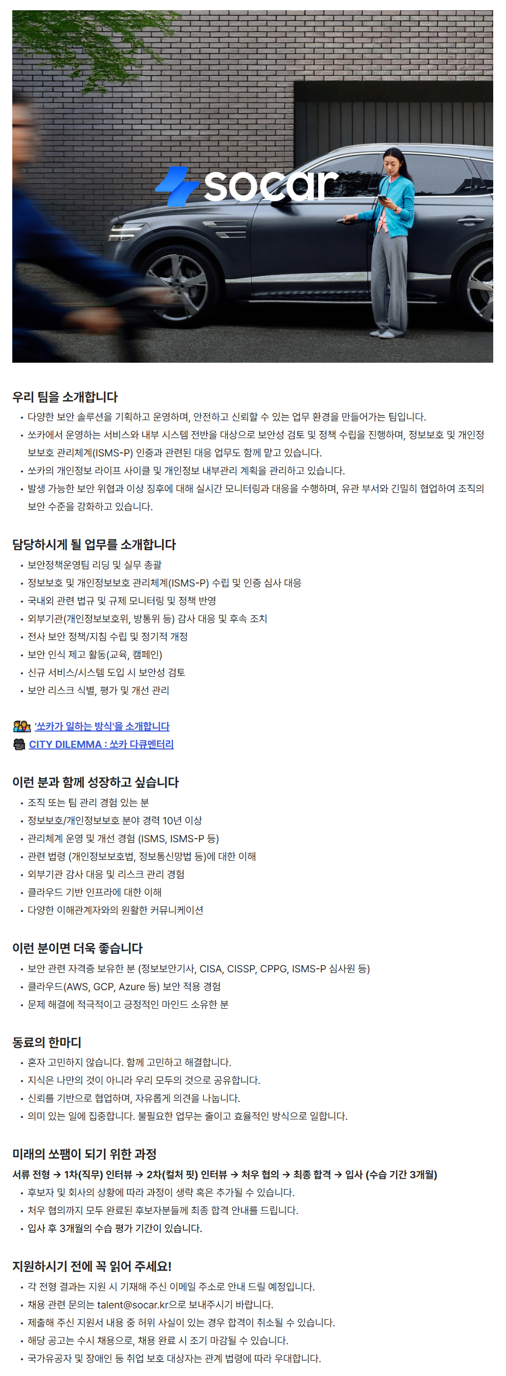 ½îÄ«¿¡¼ ¿î¿µÇÏ´Â ¼ºñ½º¿Í ³»ºÎ ½Ã½ºÅÛ Àü¹ÝÀ» ´ë»óÀ¸·Î º¸¾È¼º °ËÅä ¹× Á¤Ã¥ ¼ö¸³À» ÁøÇàÇϸç, Á¤º¸º¸È£ ¹× °³ÀÎÁ¤º¸º¸È£ °ü¸®Ã¼°è(ISMS-P) ÀÎÁõ°ú °ü·ÃµÈ ´ëÀÀ ¾÷¹«µµ ÇÔ²² ¸Ã°í ÀÖ½À´Ï´Ù.