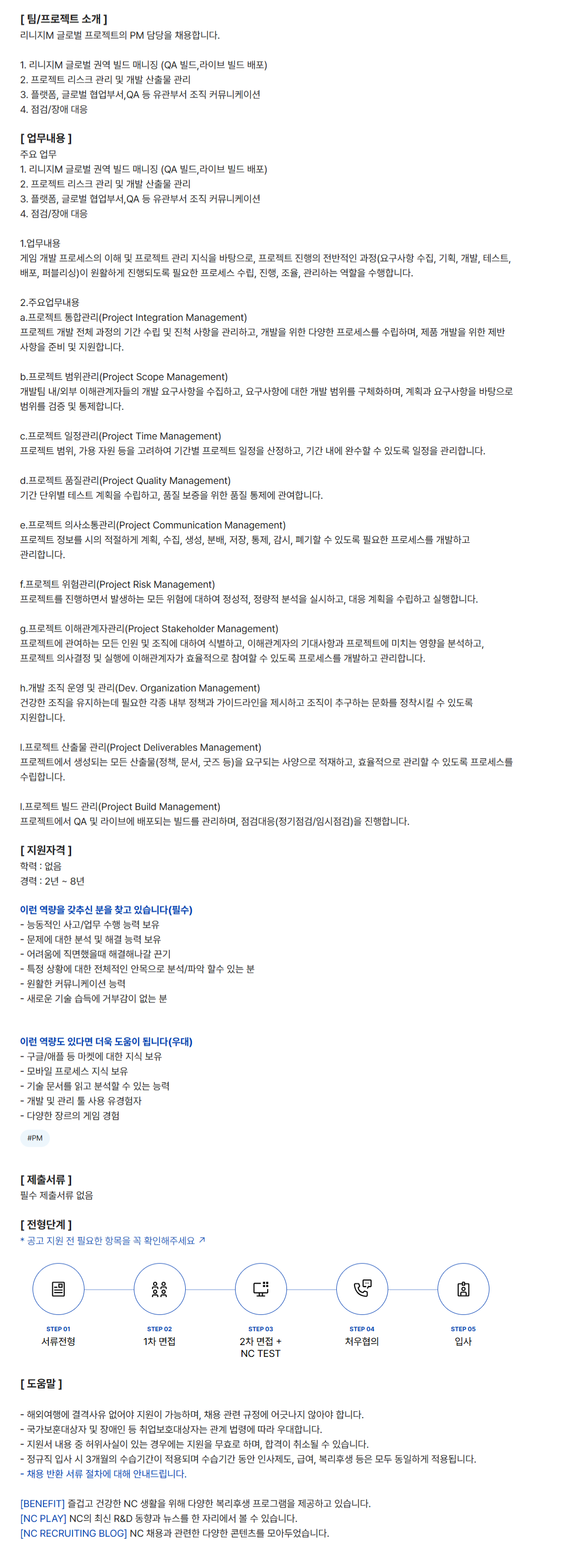 ¸®´ÏÁöM ±Û·Î¹ú ÇÁ·ÎÁ§Æ®ÀÇ PM ´ã´çÀ» ä¿ëÇÕ´Ï´Ù.