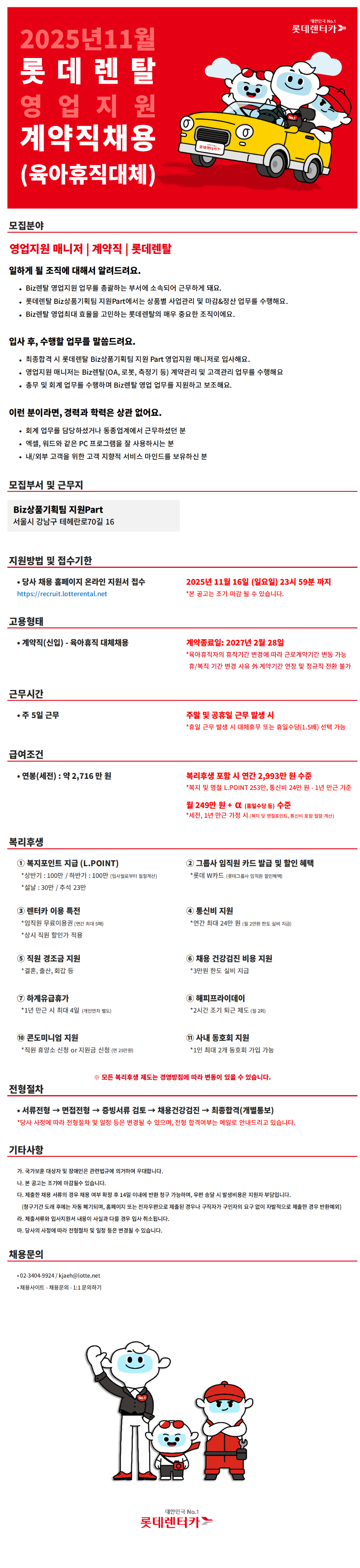 25³â 11¿ù °è¾àÁ÷(½ÅÀÔ) À°¾ÆÈÞÁ÷ ´ëü - ¿µ¾÷Áö¿ø(Biz)