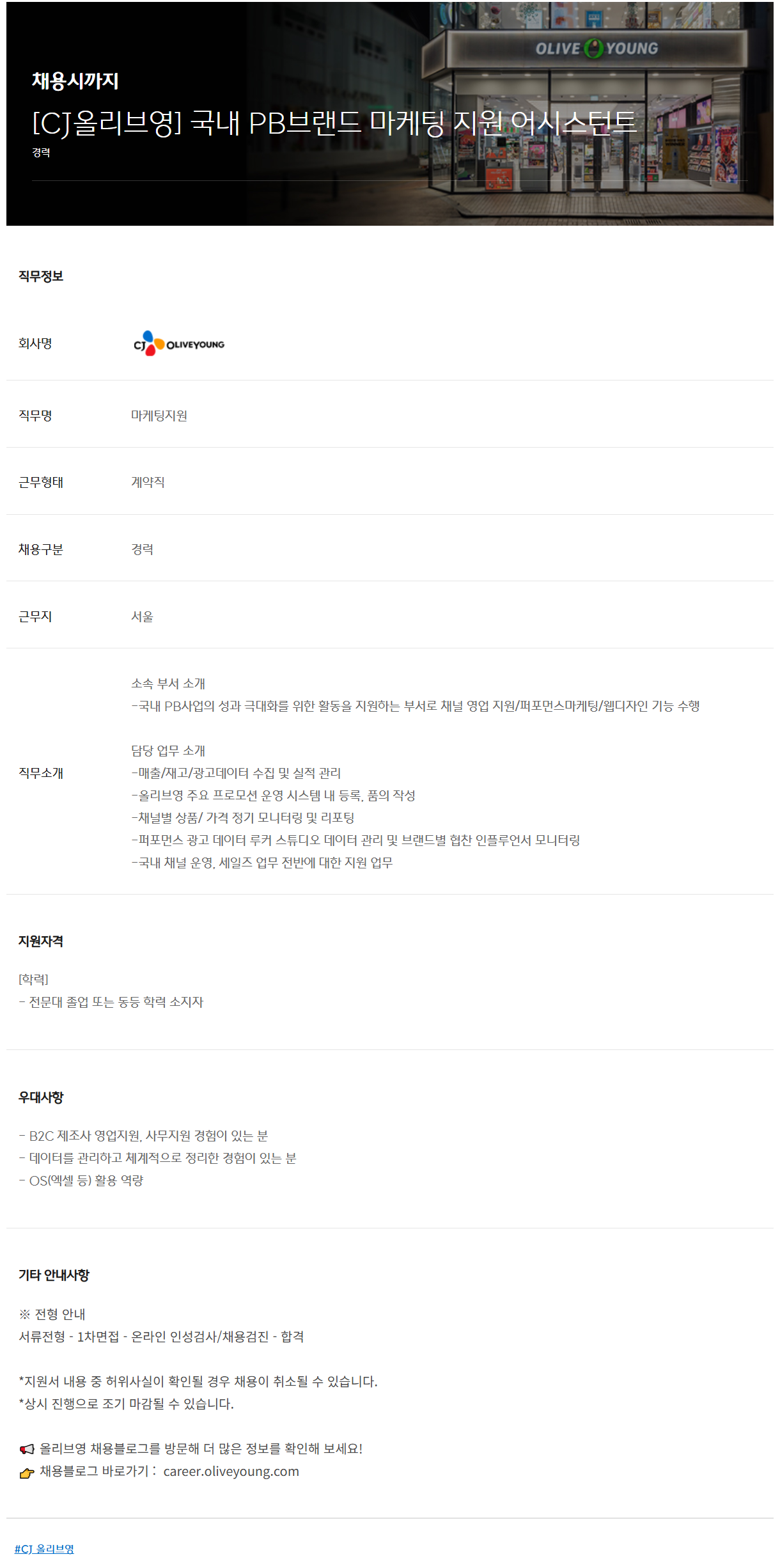 👉 ä¿ëºí·Î±× ¹Ù·Î°¡±â : career.oliveyoung.com