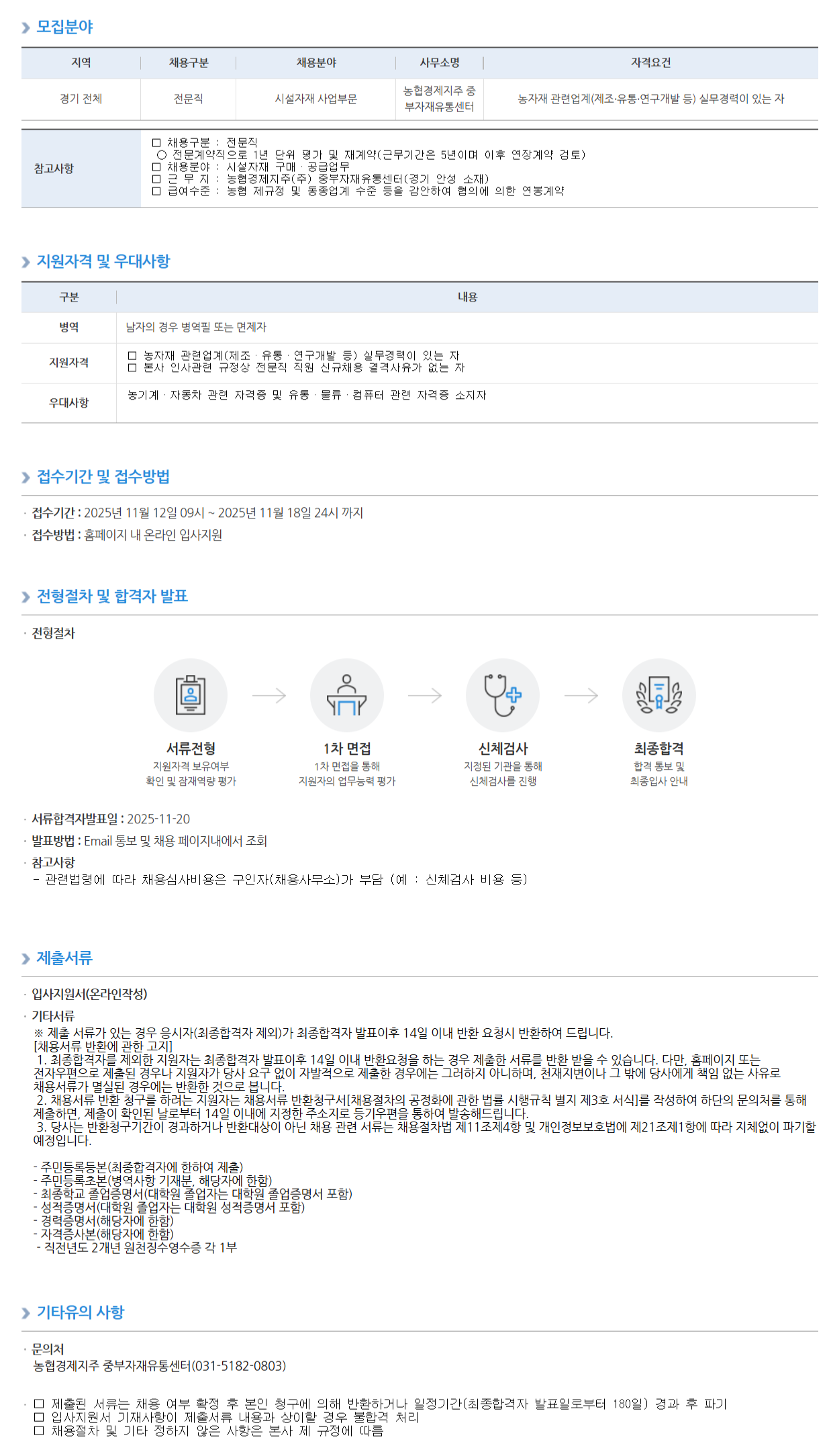[³óÇù°æÁ¦ÁöÁÖ] ³óÇù°æÁ¦ÁöÁÖ ÁߺÎÀÚÀçÀ¯Åë¼¾ÅÍ Àü¹®Á÷(½Ã¼³ÀÚÀç »ç¾÷ºÎ¹®) ä¿ë °ø°í