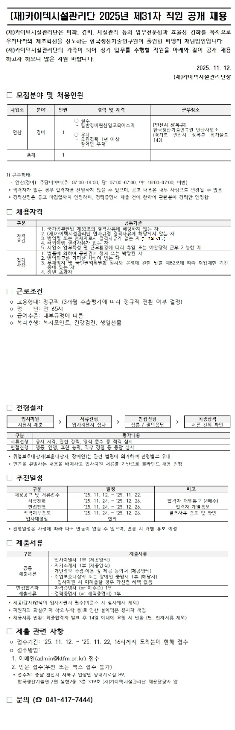 (Àç)Ä«ÀÌÅØ½Ã¼³°ü¸®´Ü 2025³â Á¦31Â÷ Á÷¿ø °ø°³Ã¤¿ë
