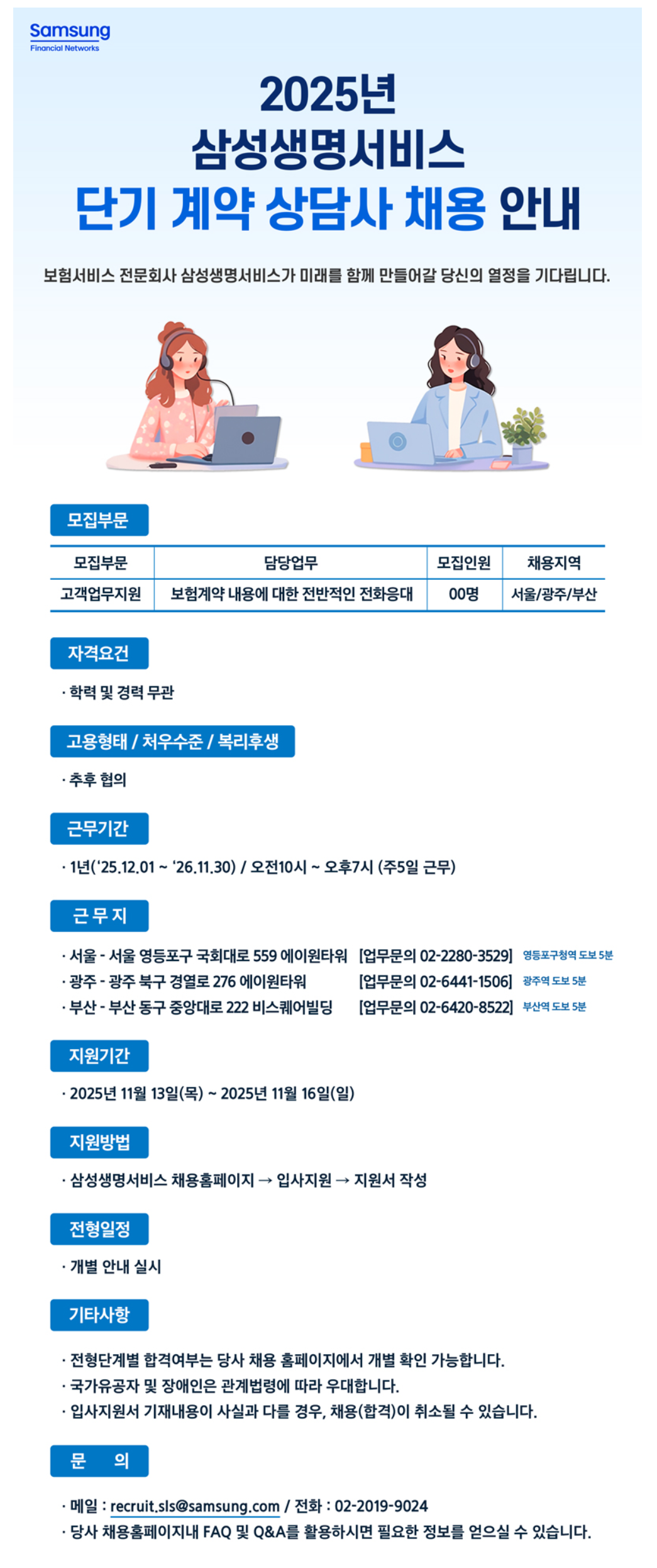 2025³â »ï¼º»ý¸í¼ºñ½º ´Ü±â °è¾àÁ÷ »ó´ã»ç ä¿ë