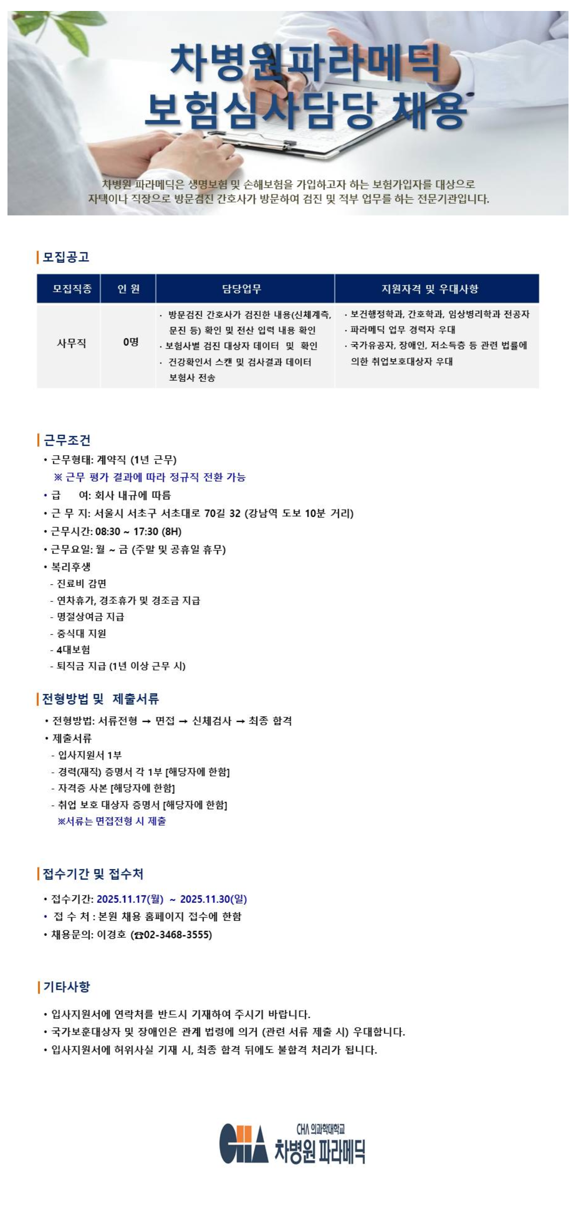 [½ºÆ÷·º½º °ÇÁø¼¾ÅÍ] Â÷º´¿øÆÄ¶ó¸Þµñ º¸Çè½É»ç´ã´ç ¸ðÁý