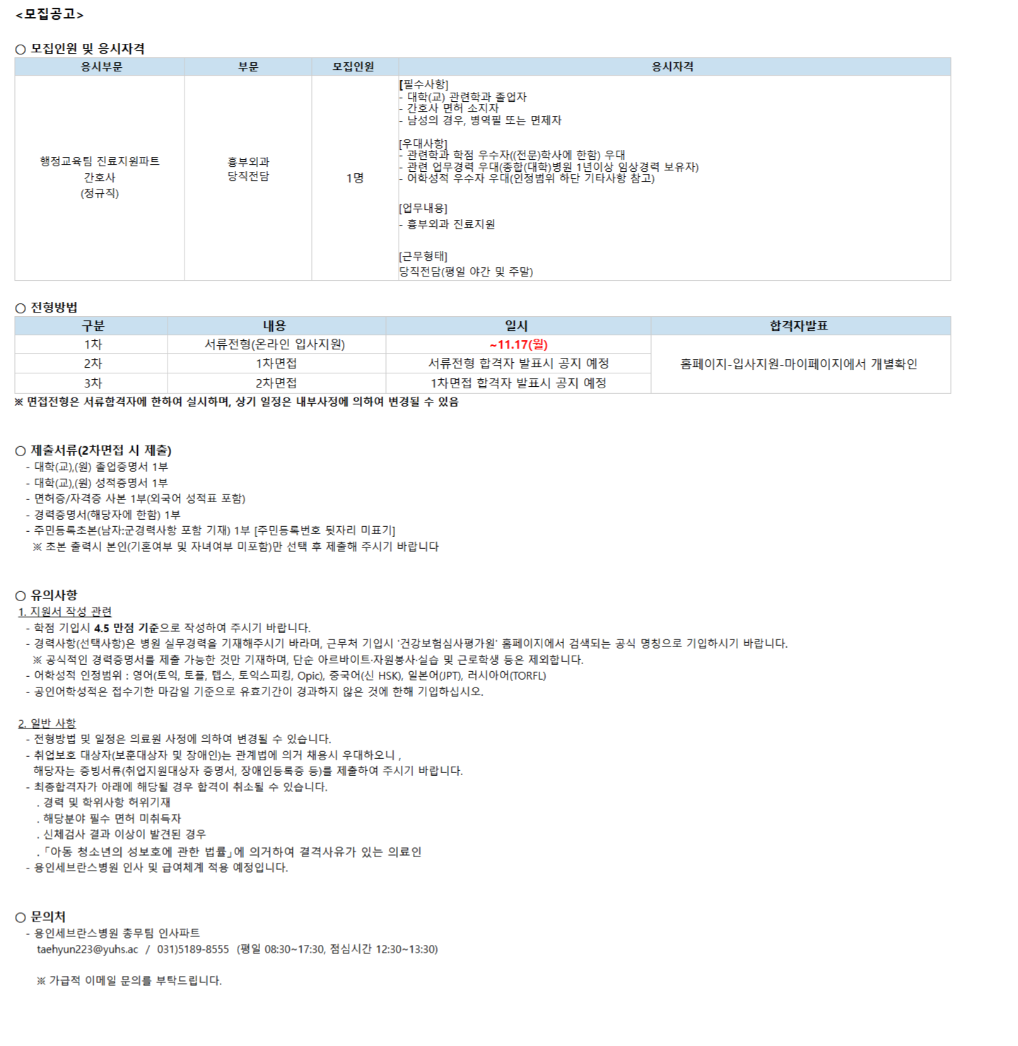 [¿ëÀÎ] ÇàÁ¤±³À°ÆÀ Áø·áÁö¿øÆÄÆ®(ÈäºÎ¿Ü°ú ´çÁ÷Àü´ã) °£È£»ç(Á¤±ÔÁ÷) ½Å±Ôä¿ë 25.11 [Àç°ø°í]