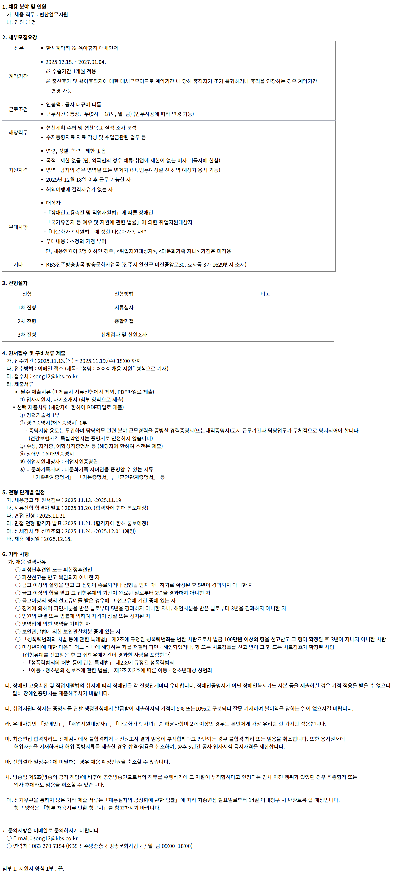 ¡Û ¿¬¶ôó : ***-****-**** (KBS ÀüÁÖ¹æ¼ÛÃѱ¹ ¹æ¼Û¹®È»ç¾÷±¹ / ¿ù~±Ý 09:00~18:00)