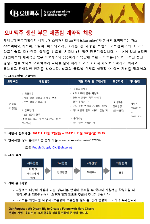 ûÁÖ°øÀå Á¦Ç°ÆÀ »ý»êºÎ¹® ä¿ë(°è¾àÁ÷)