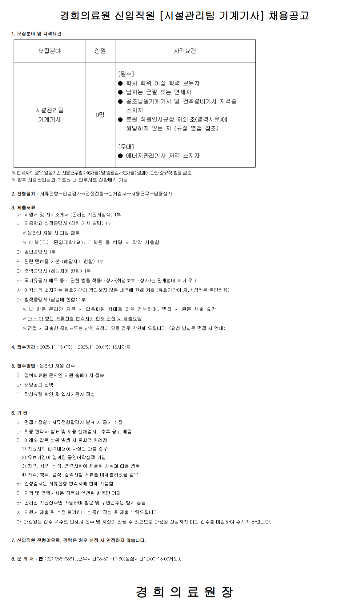 °æÈñÀÇ·á¿ø ½ÅÀÔÁ÷¿ø [½Ã¼³°ü¸®ÆÀ ±â°è±â»ç] ä¿ë°ø°í