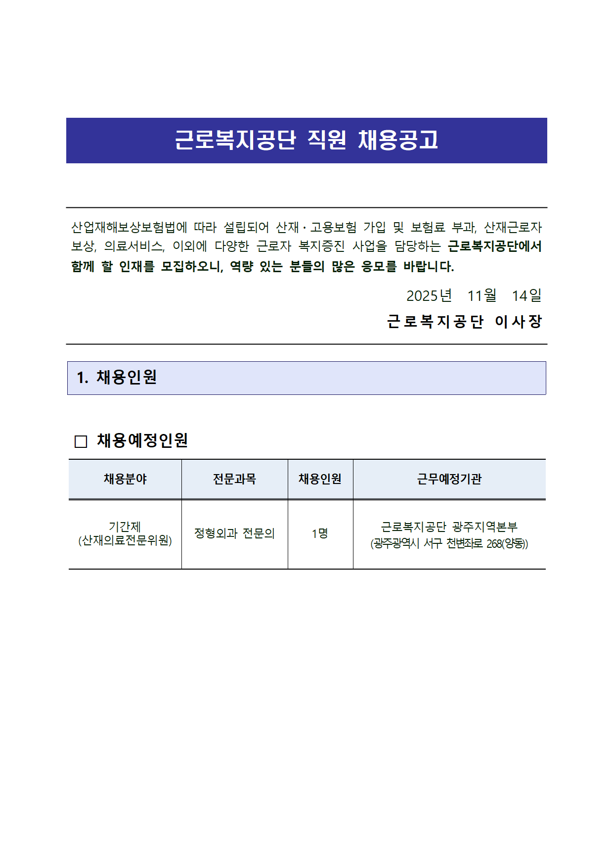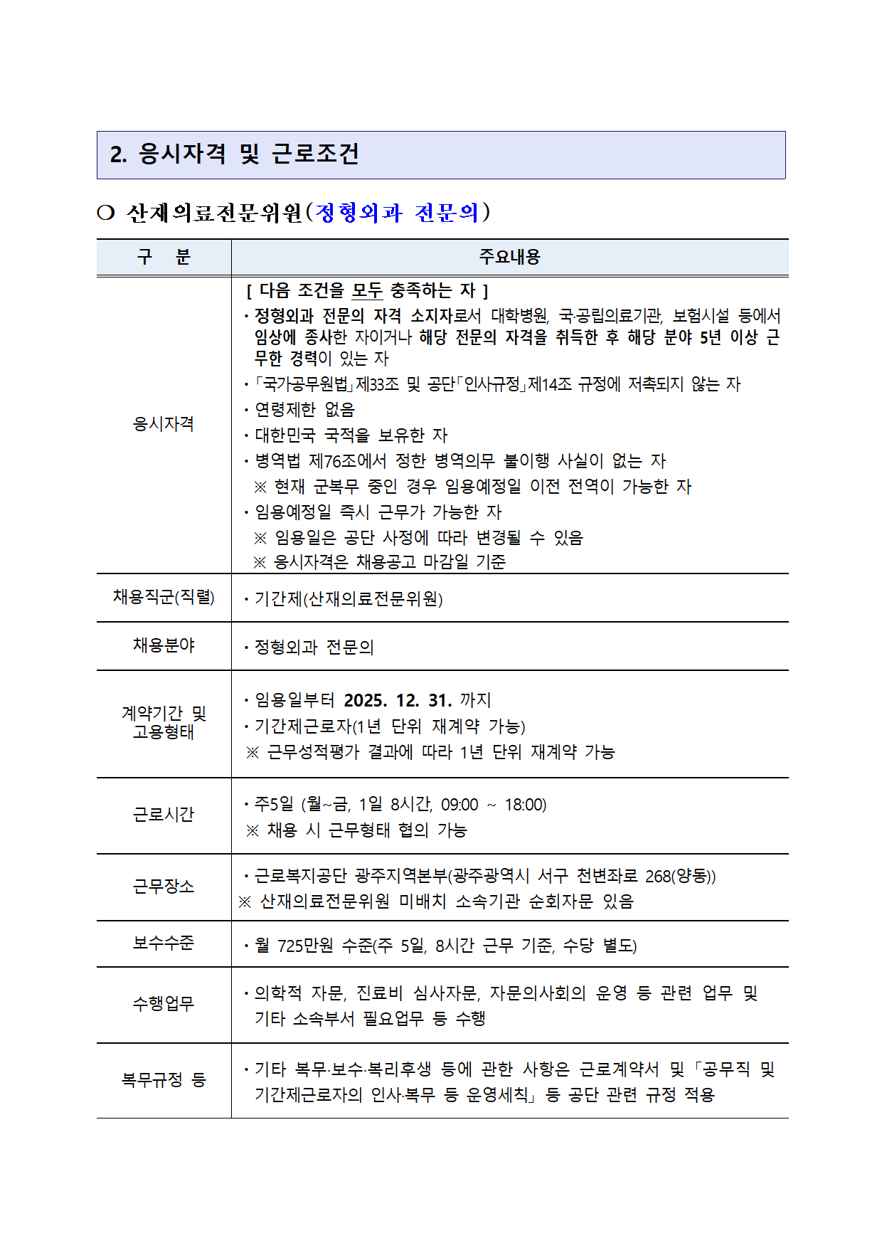 ¡à ä¿ë¿¹Á¤Àοø ä¿ëºÐ¾ß Àü¹®°ú¸ñ ä¿ëÀοø ±Ù¹«¿¹Á¤±â°ü ±â°£Á¦ (»êÀçÀÇ·áÀü¹®À§¿ø) Á¤Çü¿Ü°ú Àü¹®ÀÇ 1¸í ±Ù·Îº¹Áö°ø´Ü ±¤ÁÖÁö¿ªº»ºÎ (±¤ÁÖ±¤¿ª½Ã ¼±¸ õº¯Á·Π268(¾çµ¿)) 1. ä¿ëÀοø ±Ù