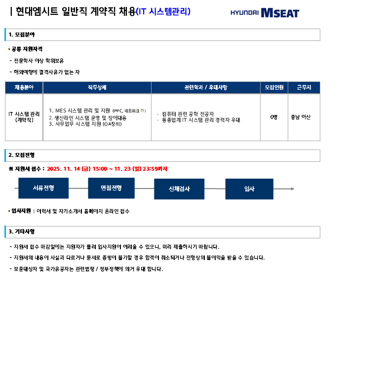 [Çö´ë¿¥½ÃÆ®] ¾Æ»ê°øÀå IT ½Ã½ºÅÛ°ü¸®ÀÚ (°è¾àÁ÷) ä¿ë
