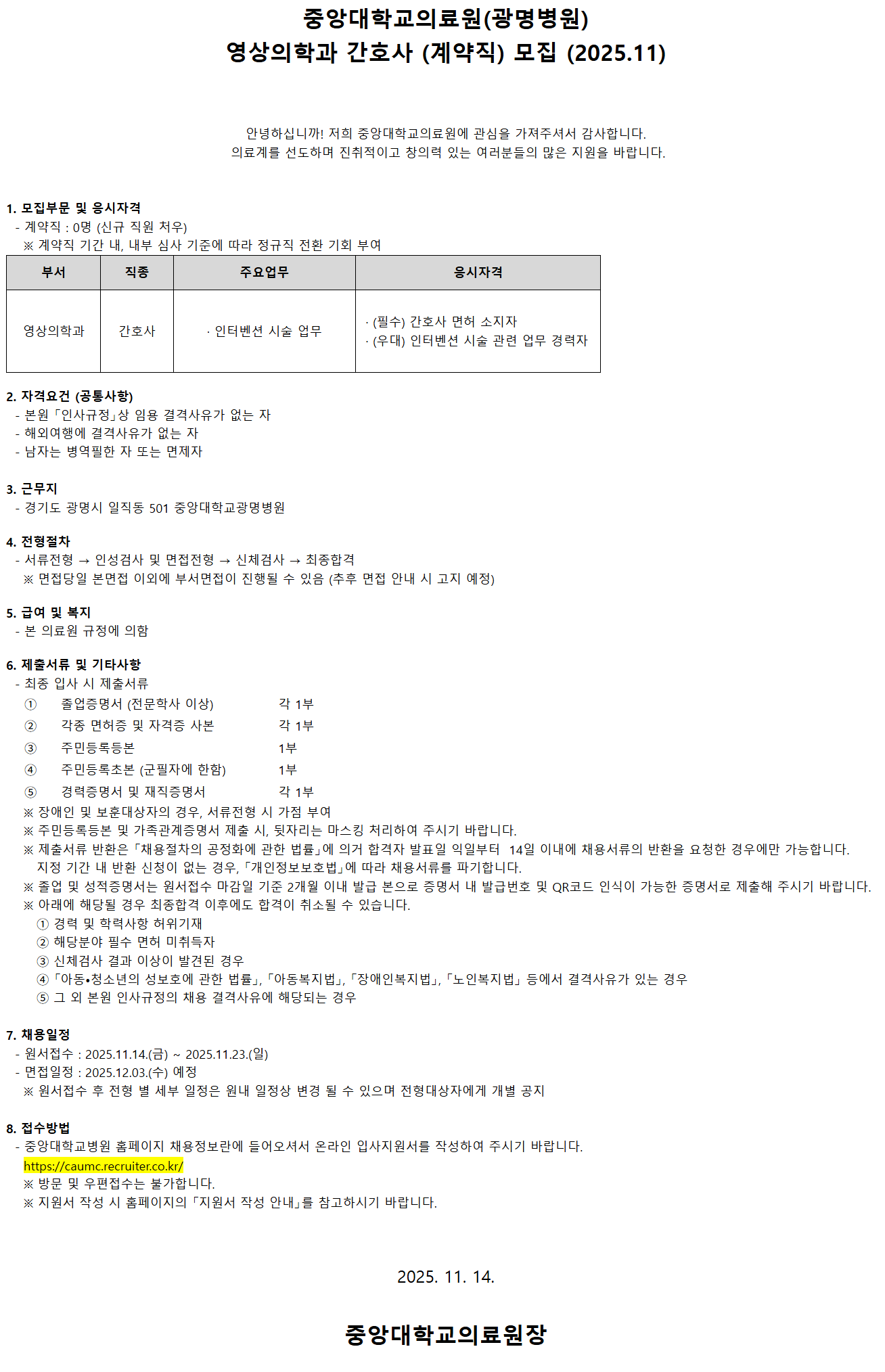 ¿µ»óÀÇÇаú °£È£»ç (°è¾àÁ÷) ¸ðÁý (2025.11)
