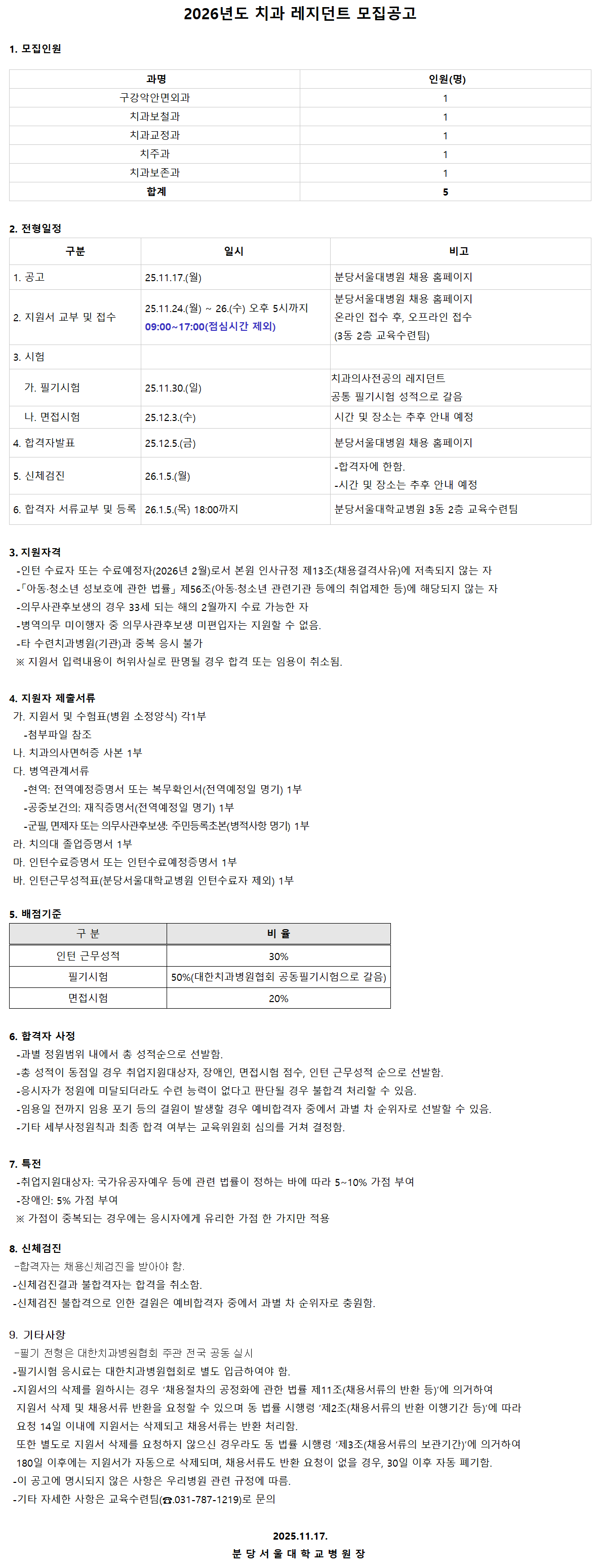 2026³âµµ Ä¡°ú ·¹Áö´øÆ® ¸ðÁý°ø°í