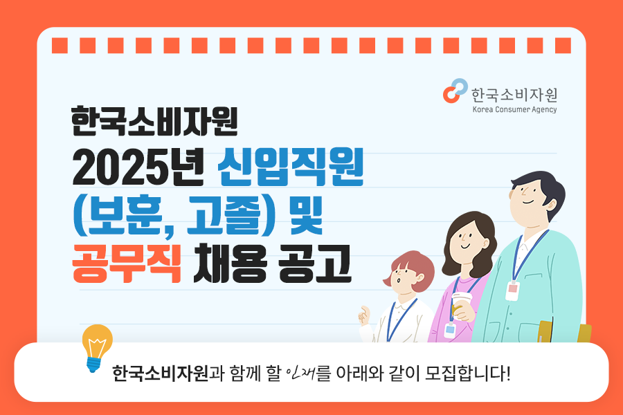 Çѱ¹¼ÒºñÀÚ¿ø 2025³â ½ÅÀÔÁ÷¿ø(º¸ÈÆ, °íÁ¹) ¹× °ø¹«Á÷ ä¿ë °ø°í