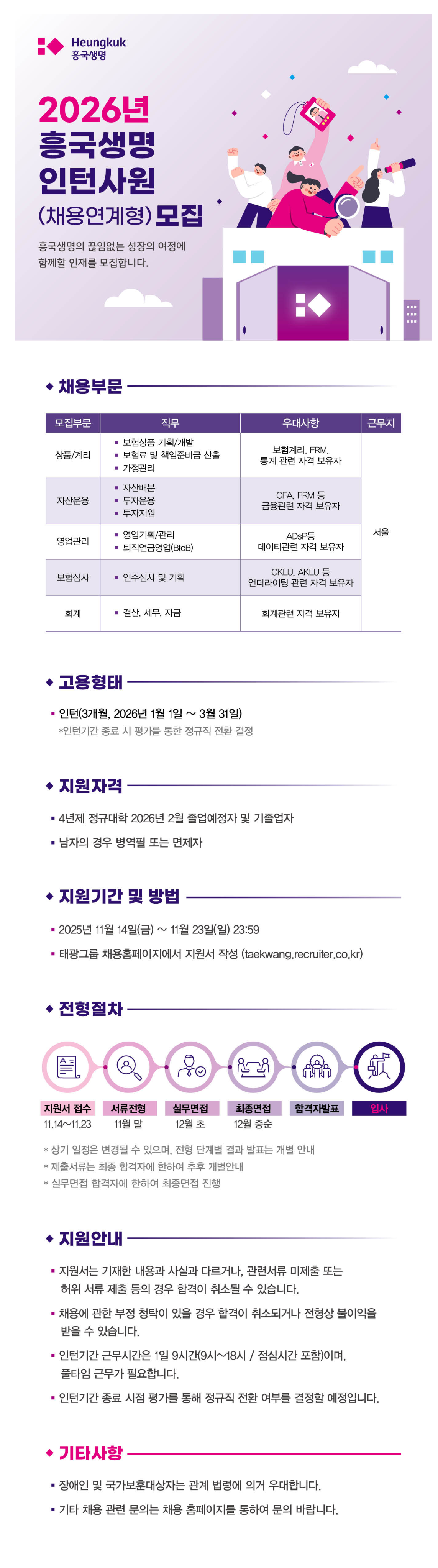 [Èï±¹»ý¸í] 2026³â ÀÎÅÏ»ç¿ø(ä¿ë¿¬°èÇü) ¸ðÁý
