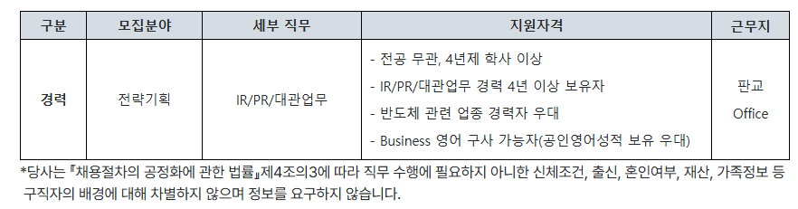 [°æ·Â] Àü·«±âȹÆÀ °æ·Â»ç¿ø ¸ðÁý(IR/PR/´ë°ü¾÷¹«)