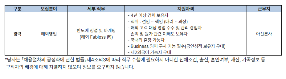 [°æ·Â] ÇØ¿Ü¿µ¾÷ ´ã´çÀÚ ¸ðÁý(Fabless Sales)