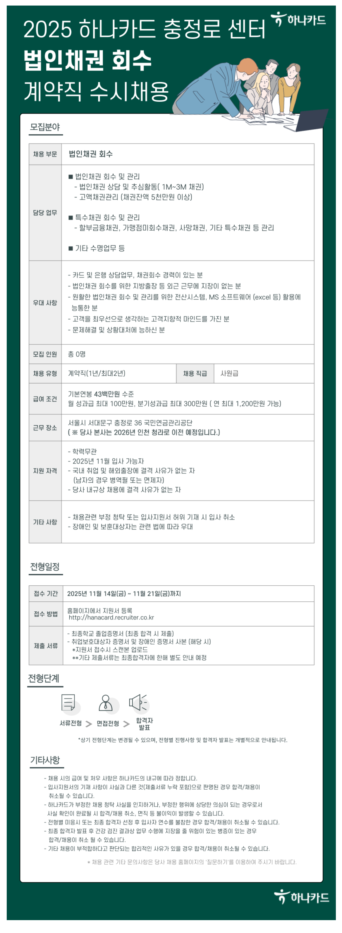 [°è¾àÁ÷] 2025 ÇϳªÄ«µå ÃæÁ¤·Î ¼¾ÅÍ ¹ýÀÎä±Çȸ¼ö °è¾àÁ÷ ¼ö½Ãä¿ë