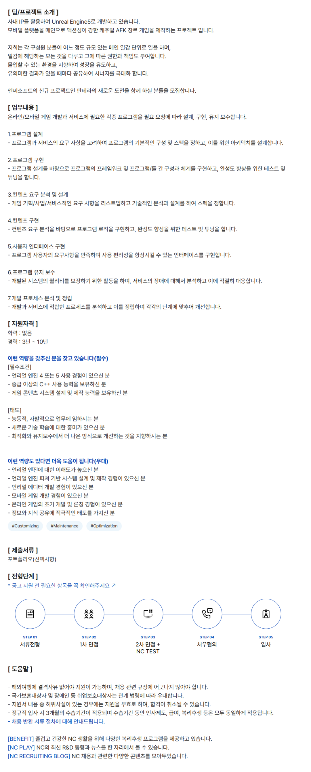 ¿Â¶óÀÎ/¸ð¹ÙÀÏ °ÔÀÓ °³¹ß°ú ¼ºñ½º¿¡ ÇÊ¿äÇÑ °¢Á¾ ÇÁ·Î±×·¥À» ÇÊ¿ä ¿äû¿¡ µû¶ó ¼³°è, ±¸Çö, À¯Áö º¸¼öÇÕ´Ï´Ù.