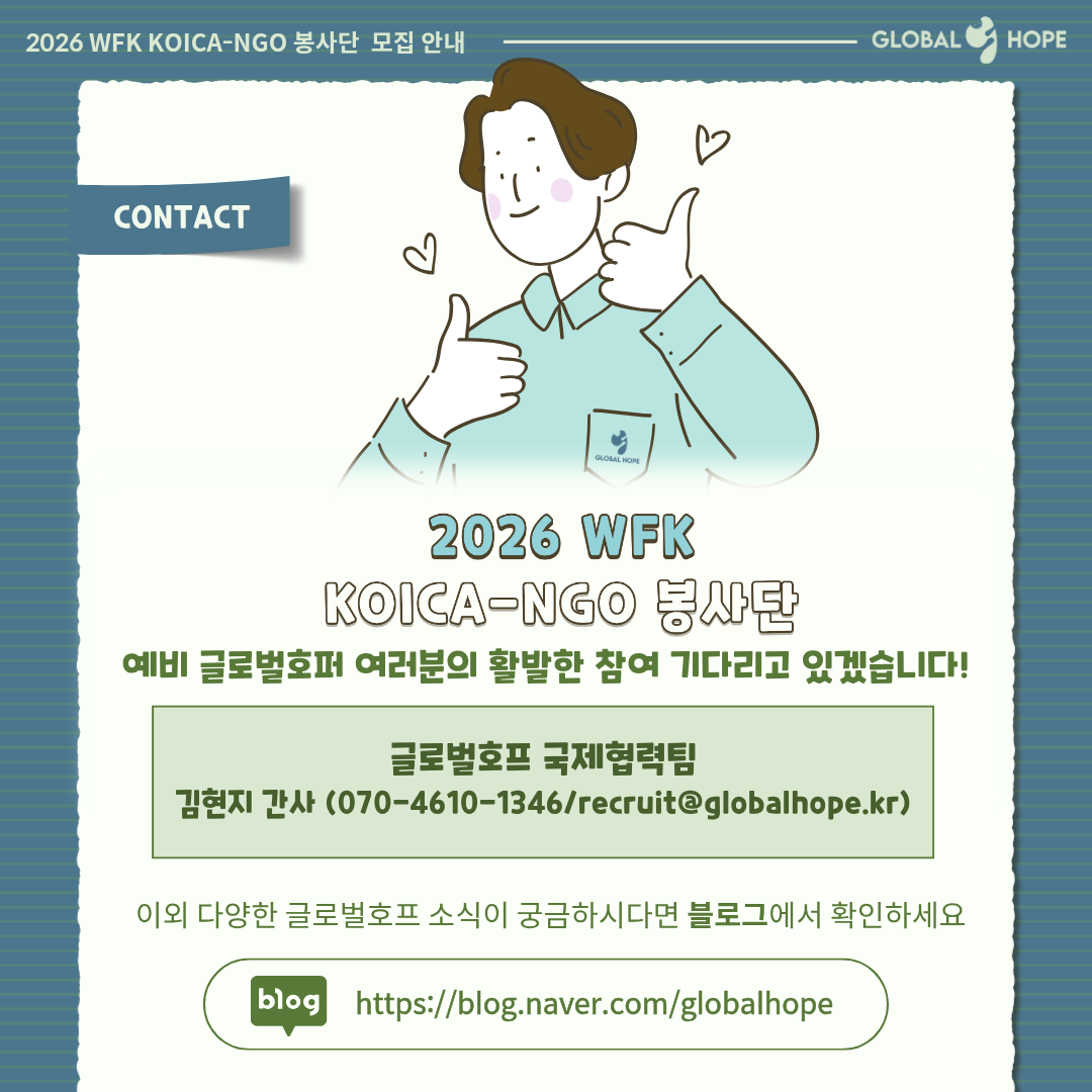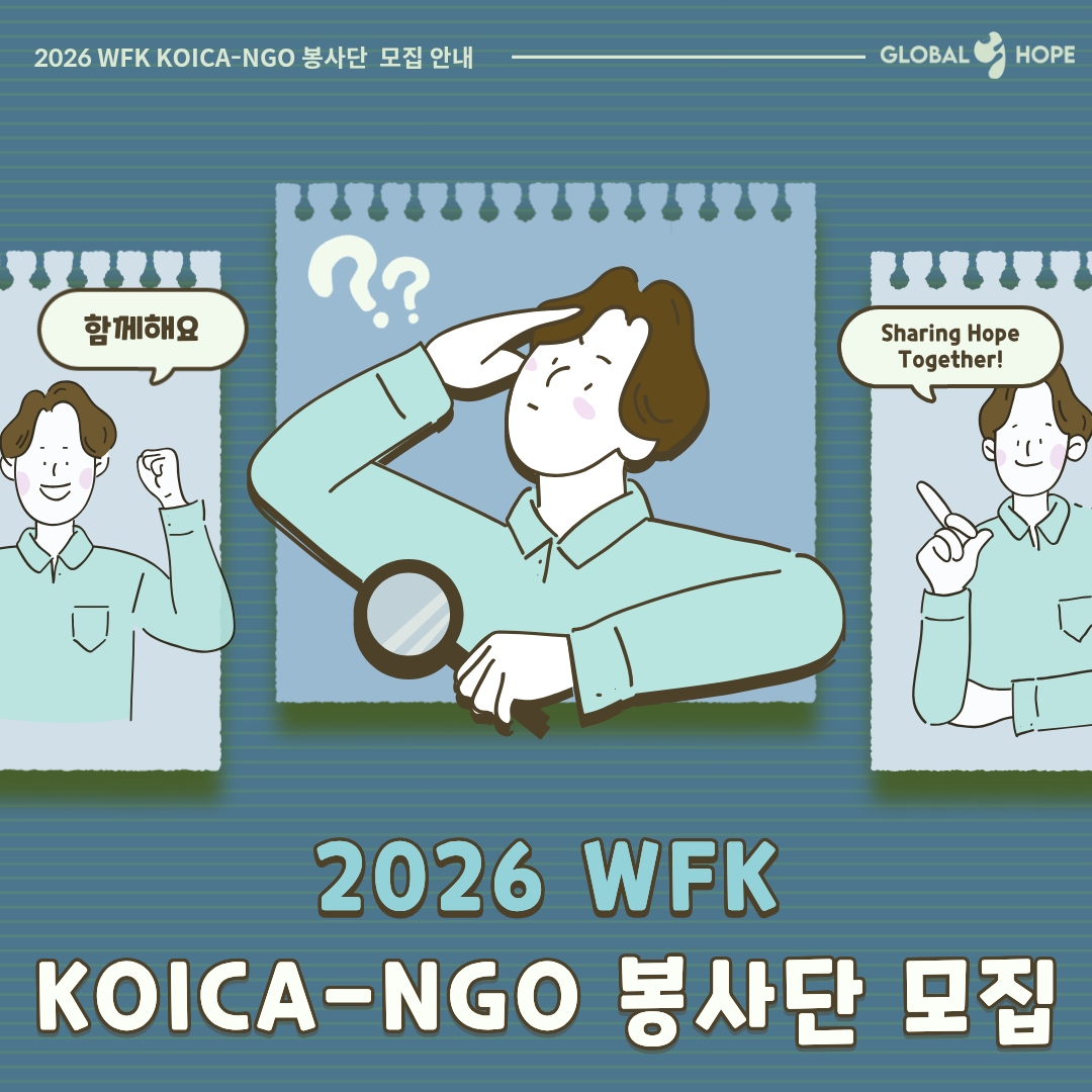 Çʸ®ÇÉ¿¡¼ ÇÔ²² Ȱµ¿ÇÒ WFK NGO ºÀ»ç ´Ü¿øÀ» ¸ðÁýÇÏ¿À´Ï, ¿Á¤°ú °ü½ÉÀÌ ÀÖ´Â ºÐµéÀÇ ¸¹Àº Áö¿ø¹Ù¶ø´Ï´Ù.