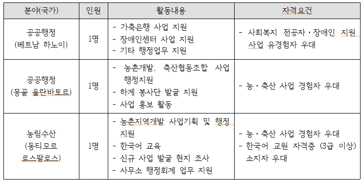 ¤· ÇØ¿ÜºÀ»çȰµ¿À» ¼öÇàÇϴµ¥ ÀûÇÕÇÑ ÀÚ