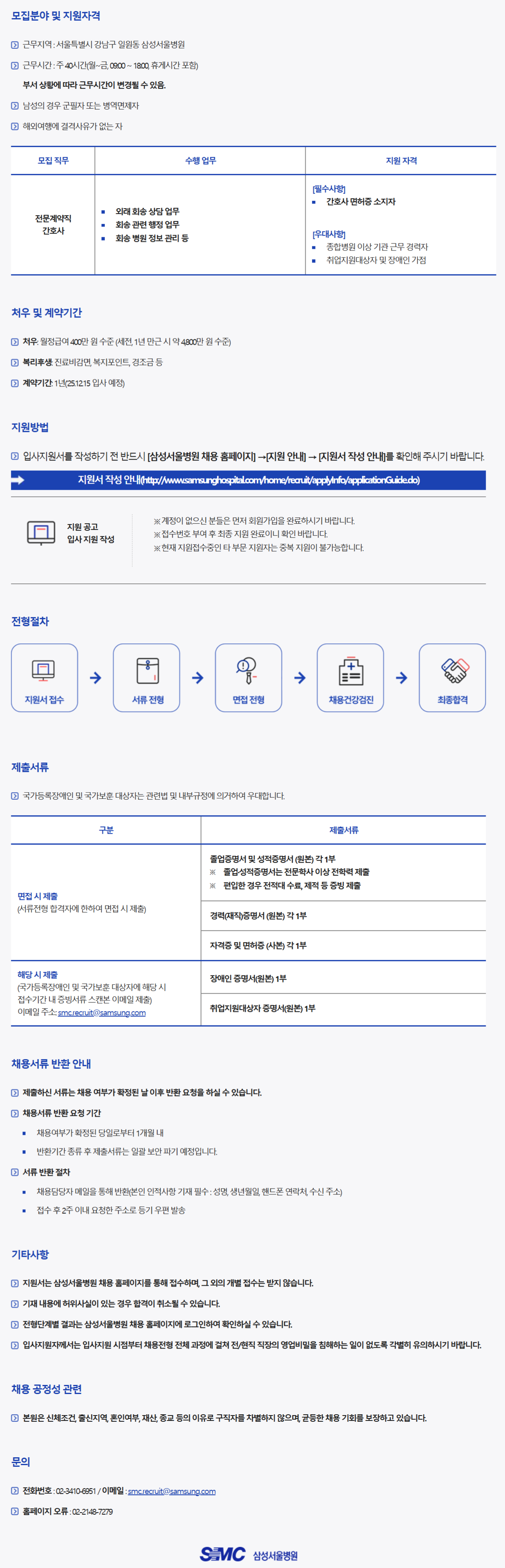 ¸ðÁý Á÷¹« ¼öÇà ¾÷¹« Áö¿ø ÀÚ°Ý Àü¹®°è¾àÁ÷ °£È£»ç ¿Ü·¡ ȸ¼Û »ó´ã ¾÷¹« ȸ¼Û °ü·Ã ÇàÁ¤ ¾÷¹« ȸ¼Û º´¿ø Á¤º¸ °ü¸® µî [Çʼö»çÇ×] °£È£»ç ¸éÇãÁõ ¼ÒÁöÀÚ [¿ì´ë»çÇ×] Á¾ÇÕº´¿ø ÀÌ»ó ±â°ü ±Ù¹« °æ·ÂÀÚ Ãë¾÷Áö¿ø´ë»óÀÚ ¹× Àå¾ÖÀÎ °¡Á¡