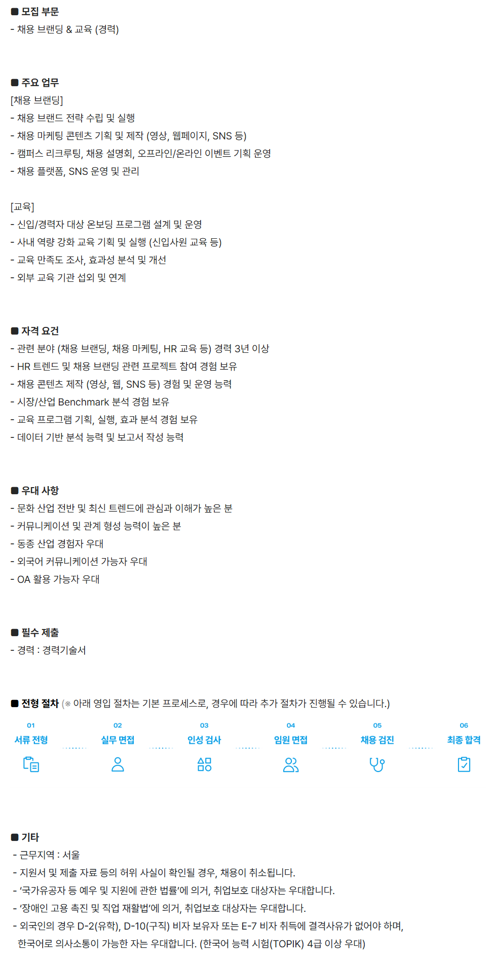 - °ü·Ã ºÐ¾ß (ä¿ë ºê·£µù, ä¿ë ¸¶ÄÉÆÃ, HR ±³À° µî) °æ·Â 3³â ÀÌ»ó