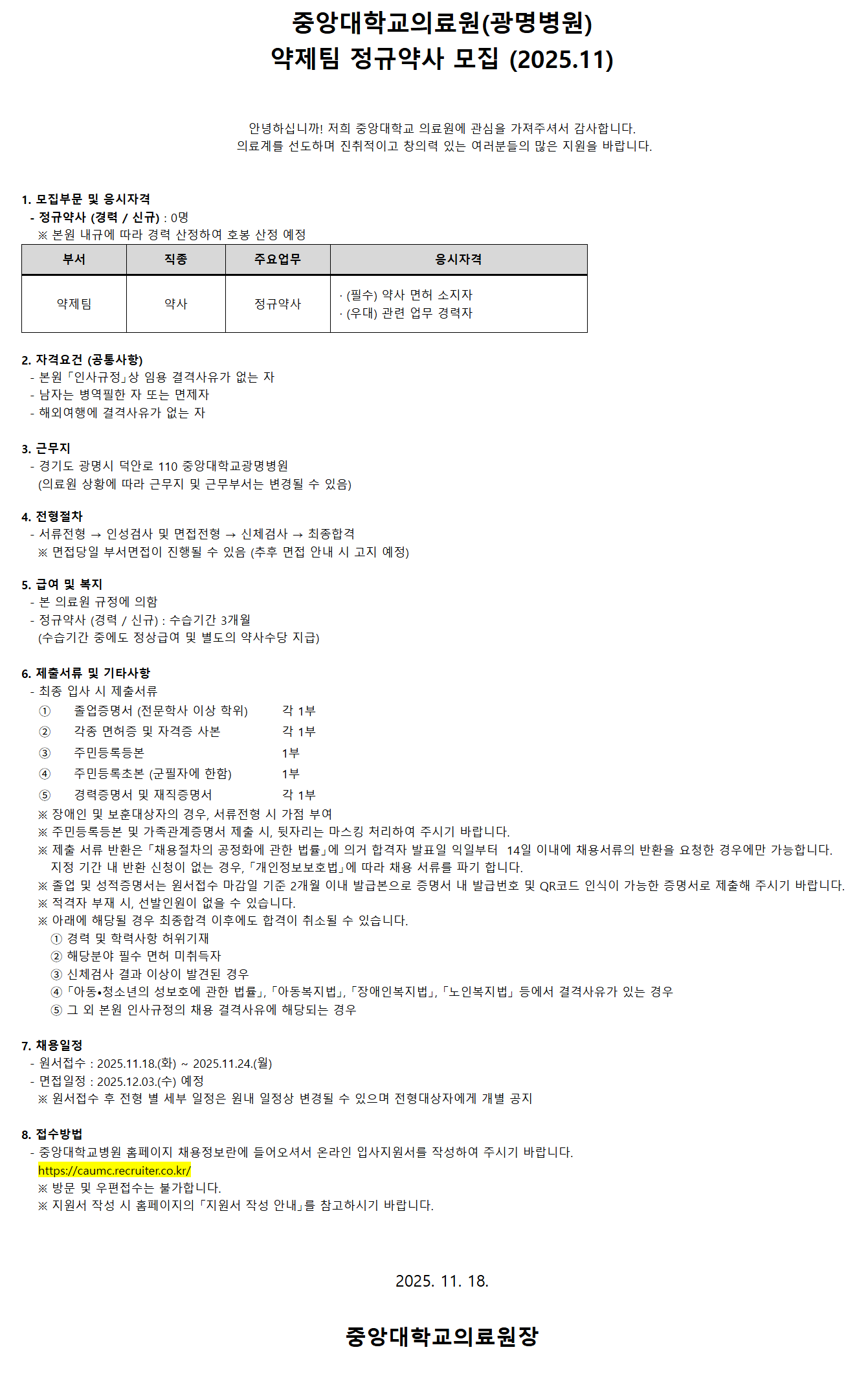 ¾àÁ¦ÆÀ Á¤±Ô¾à»ç ¸ðÁý (2025.11)
