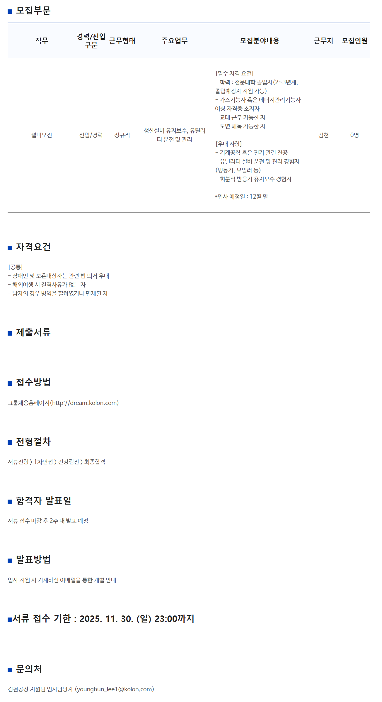 ¼³ºñº¸Àü ½ÅÀÔ/°æ·Â Á¤±ÔÁ÷ »ý»ê¼³ºñ À¯Áöº¸¼ö, À¯Æ¿¸®Æ¼ ¿îÀü ¹× °ü¸® [Çʼö ÀÚ°Ý ¿ä°Ç]