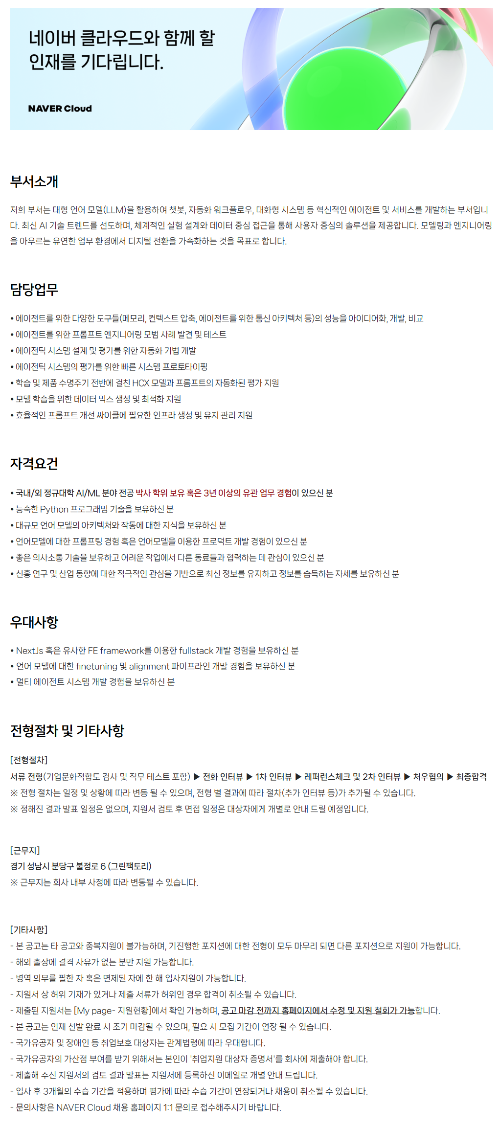 • ±¹³»/¿Ü Á¤±Ô´ëÇÐ AI/ML ºÐ¾ß Àü°ø ¹Ú»ç ÇÐÀ§ º¸À¯ ȤÀº 3³â ÀÌ»óÀÇ À¯°ü ¾÷¹« °æÇèÀÌ ÀÖÀ¸½Å ºÐ