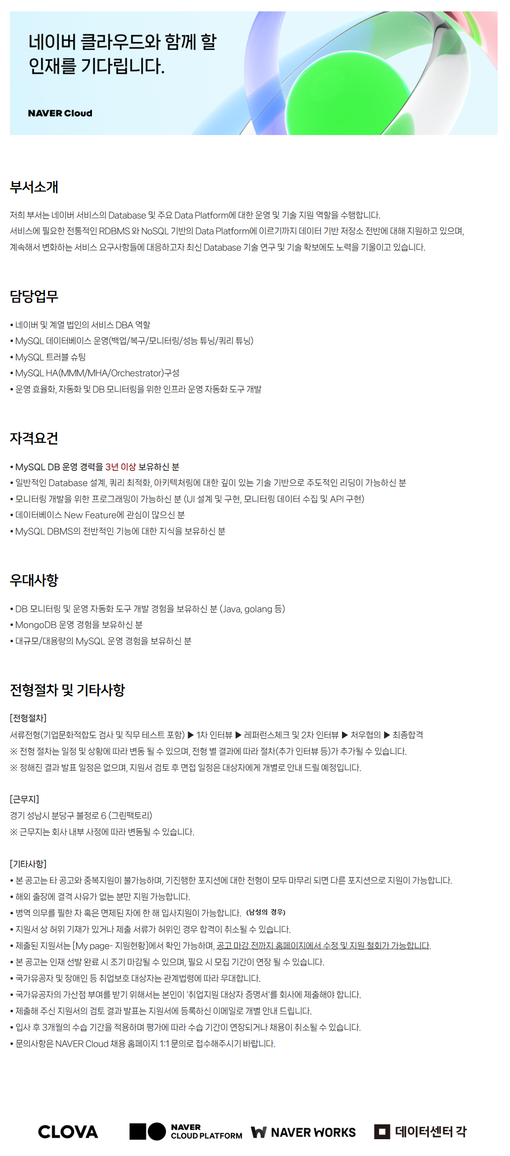 ÀúÈñ ºÎ¼´Â ³×À̹ö ¼ºñ½ºÀÇ Database ¹× ÁÖ¿ä Data Platform¿¡ ´ëÇÑ ¿î¿µ ¹× ±â¼ú Áö¿ø ¿ªÇÒÀ» ¼öÇàÇÕ´Ï´Ù.