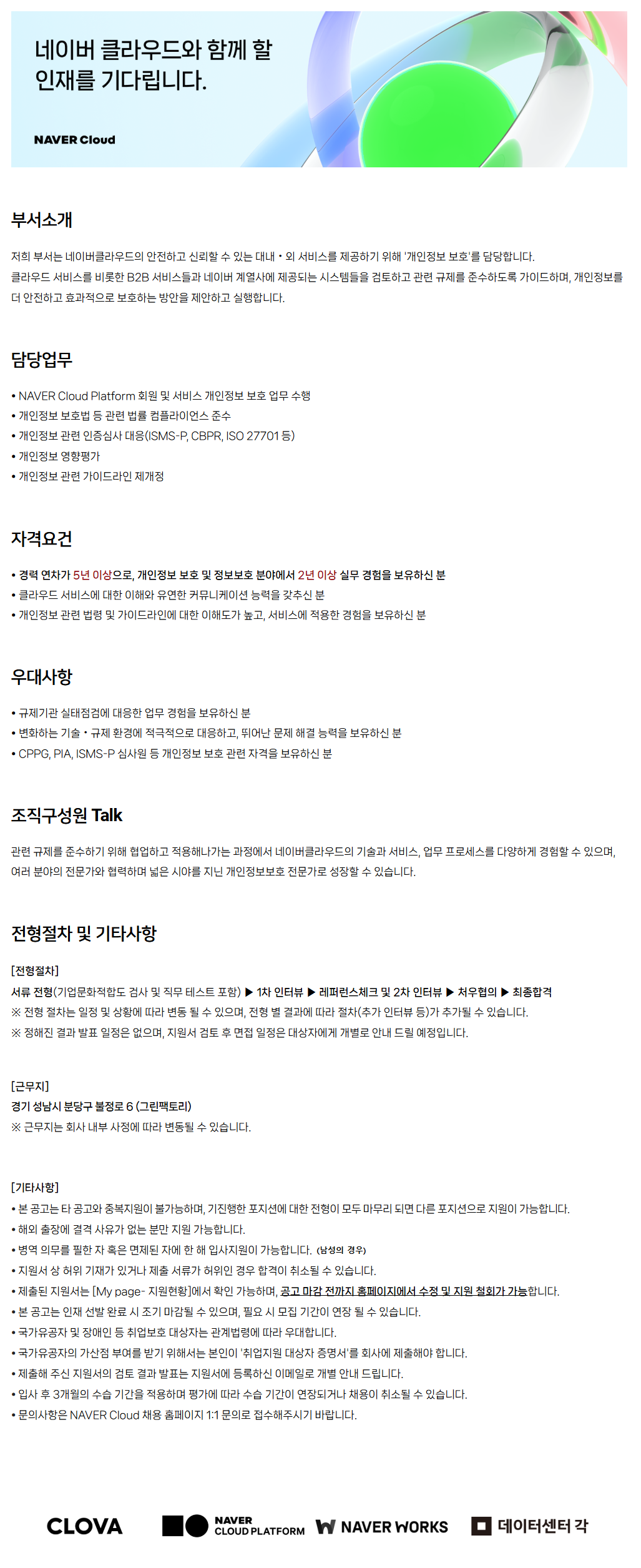 • NAVER Cloud Platform ȸ¿ø ¹× ¼ºñ½º °³ÀÎÁ¤º¸ º¸È£ ¾÷¹« ¼öÇà