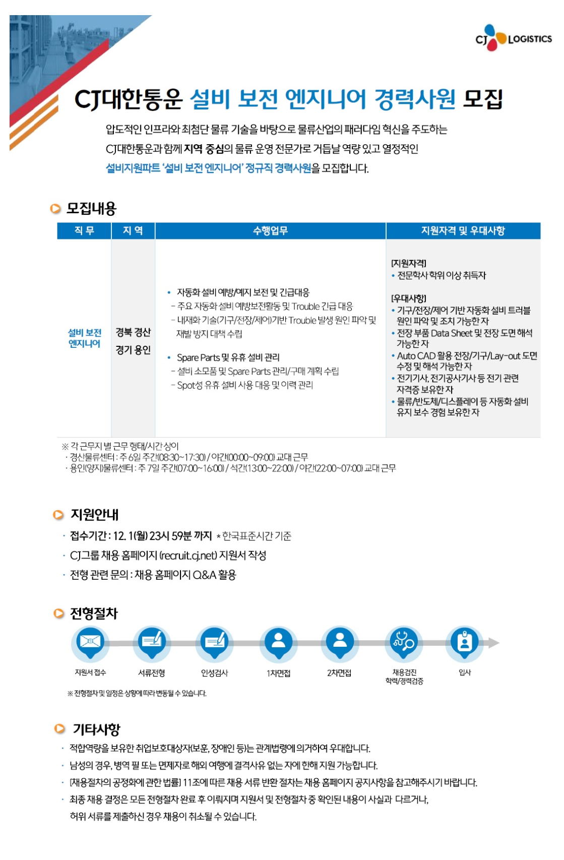 [CJ´ëÇÑÅë¿î] ¼³ºñ º¸Àü ¿£Áö´Ï¾î °æ·Â»ç¿ø ¸ðÁý