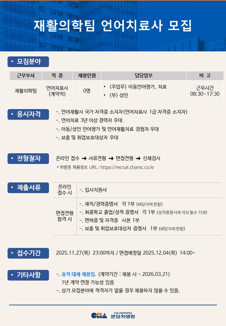 [ºÐ´çÂ÷º´¿ø] ÀçȰÀÇÇÐÆÀ ¾ð¾îÄ¡·á»ç ¸ðÁý