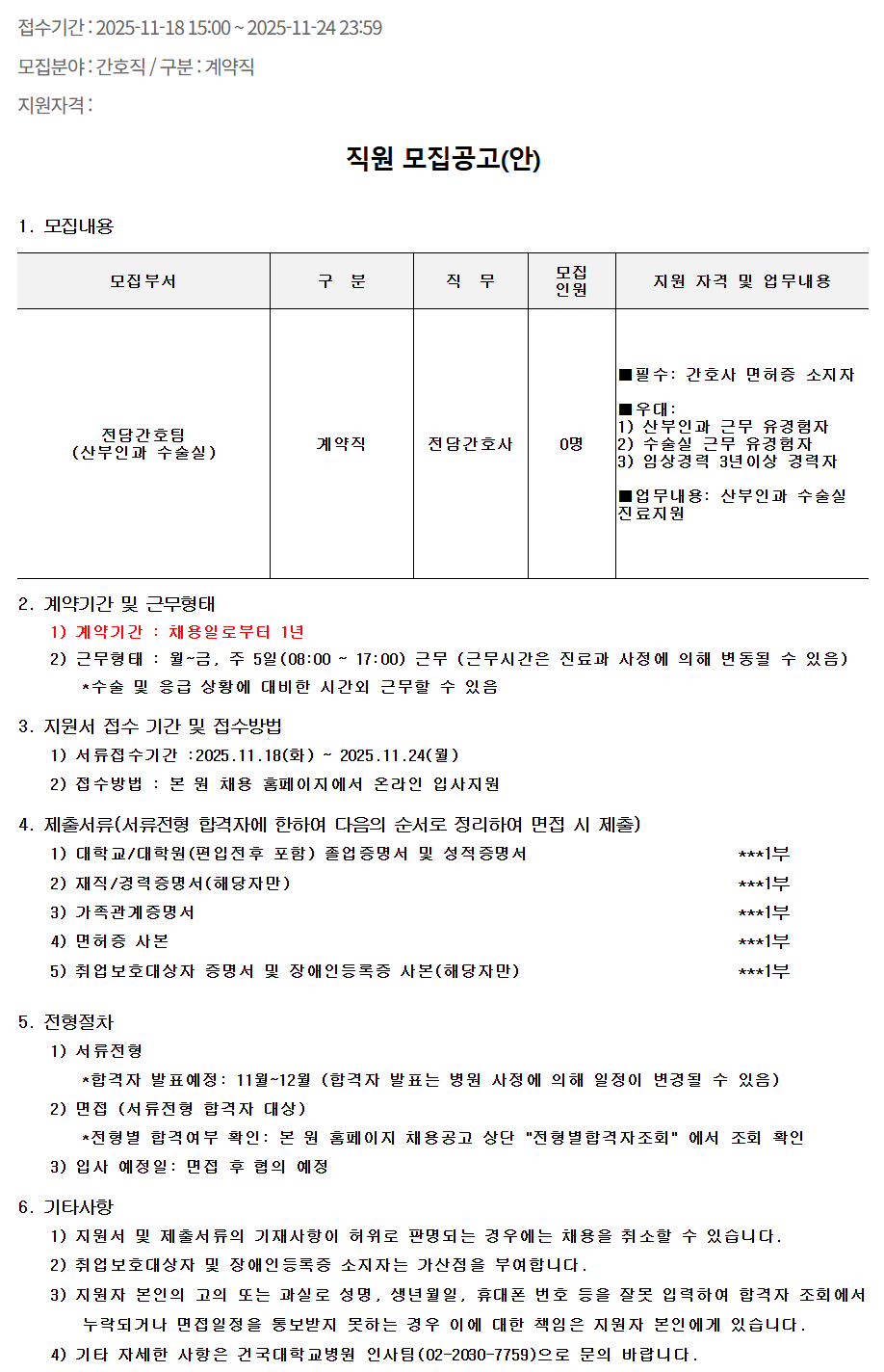 (»êºÎÀΰú ¼ö¼ú½Ç) °è¾àÁ÷ Àü´ã°£È£»ç 0¸í ¡áÇʼö: °£È£»ç ¸éÇãÁõ ¼ÒÁöÀÚ