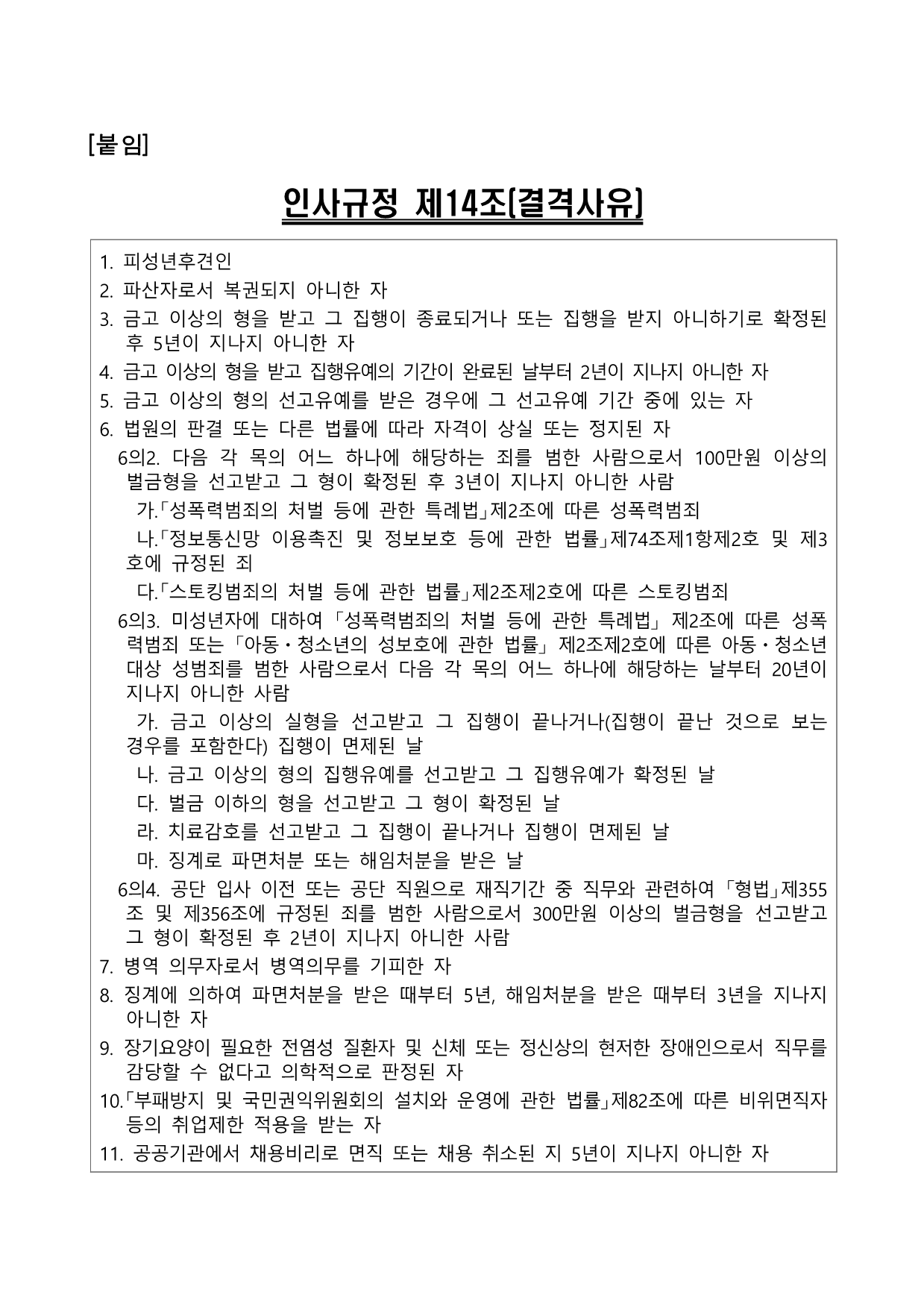 ❍ Àλç±ÔÁ¤ Á¦14Á¶¿¡ Á¤ÇÑ °á°Ý»çÀ¯°¡ ¾ø´Â ÀÚ (ºÙÀÓ ÂüÁ¶)