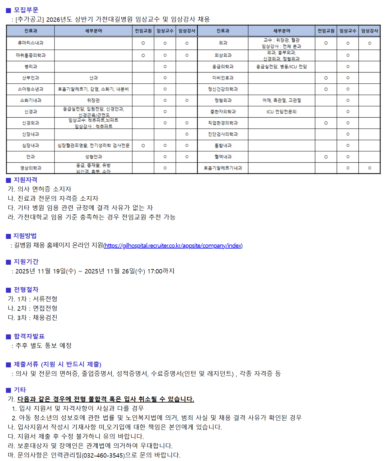 [Ãß°¡°ø°í] °¡Ãµ´ë±æº´¿ø ÀÓ»ó±³¼ö ¹× ÀÓ»ó°­»ç ä¿ë