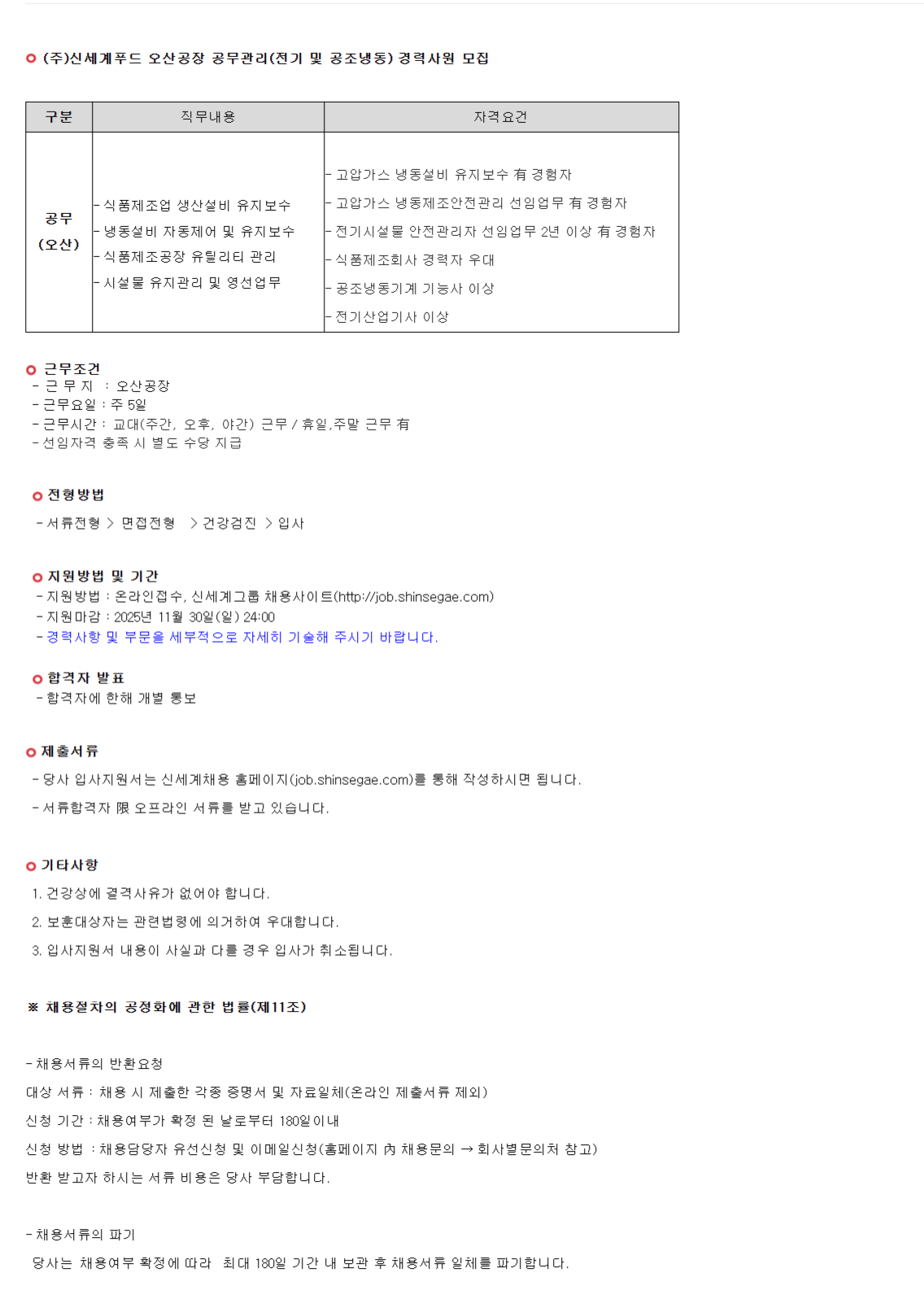 ½Å¼¼°èǪµå(ÁÖ)½Å¼¼°èǪµå ¿À»ê°øÀå °ø¹«°ü¸®(Àü±â ¹× °øÁ¶³Ãµ¿) °æ·Â»ç¿ø ¸ðÁý