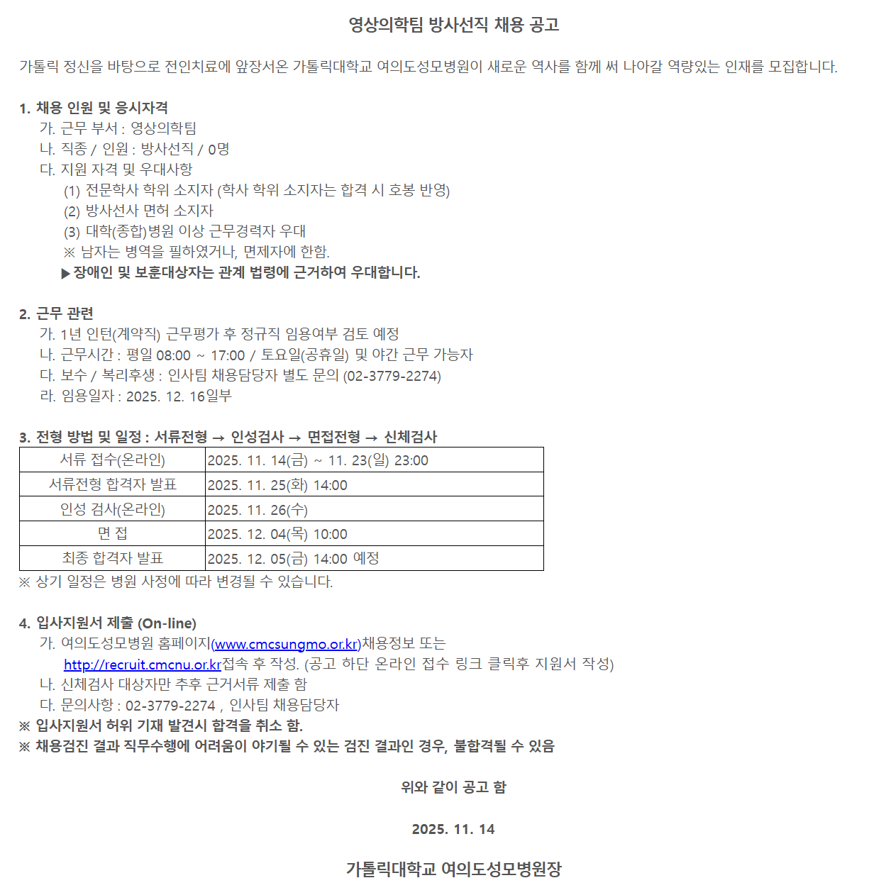 °¡. ¿©Àǵµ¼º¸ðº´¿ø ȨÆäÀÌÁö(www.cmcsungmo.or.kr)ä¿ëÁ¤º¸ ¶Ç´Â