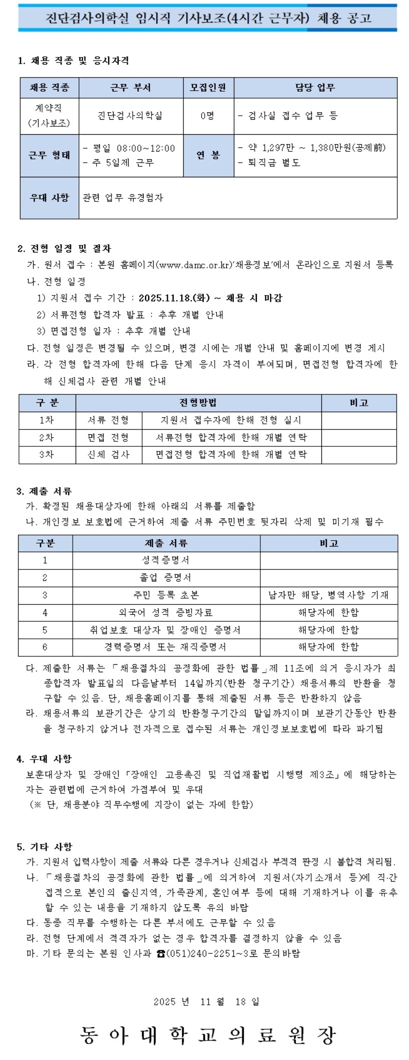 Áø´Ü°Ë»çÀÇÇÐ½Ç ÀÓ½ÃÁ÷ ±â»çº¸Á¶ ä¿ë °ø°í