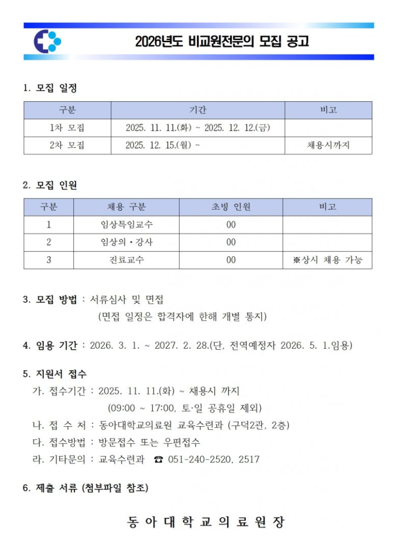 2026³âµµ ºñ±³¿ø Àü¹®ÀÇ ¸ðÁý °ø°í
