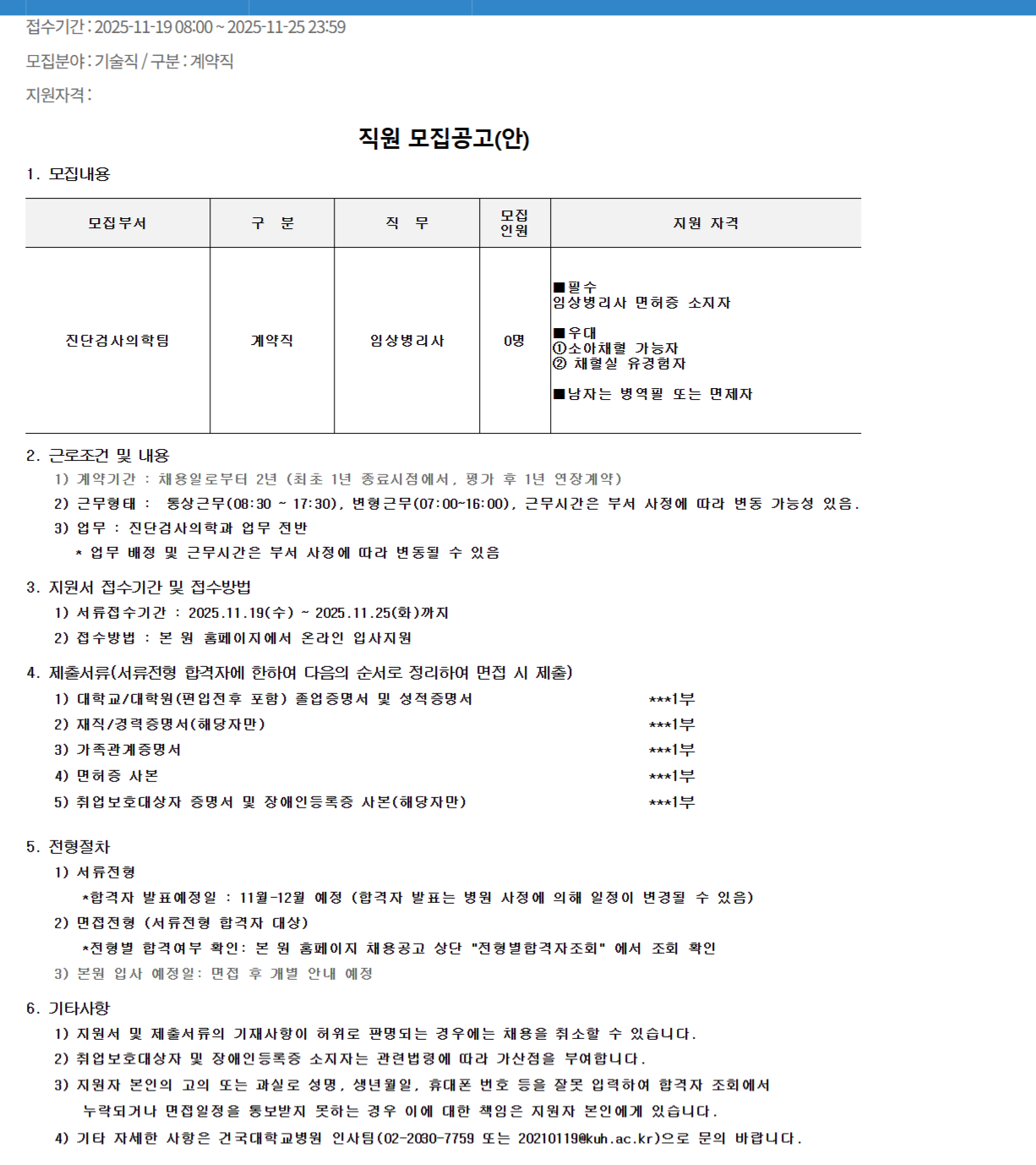 ¸ðÁýºÎ¼ ±¸ ºÐ Á÷ ¹« ¸ðÁý Àοø Áö¿ø ÀÚ°Ý Áø´Ü°Ë»çÀÇÇÐÆÀ °è¾àÁ÷ ÀÓ»óº´¸®»ç 0¸í ¡áÇʼö ÀÓ»óº´¸®»ç ¸éÇãÁõ ¼ÒÁöÀÚ ¡á¿ì´ë ¨ç¼Ò¾ÆÃ¤Ç÷ °¡´ÉÀÚ ¨è äÇ÷½Ç À¯°æÇèÀÚ ¡á³²ÀÚ´Â º´¿ªÇÊ ¶Ç´Â ¸éÁ¦ÀÚ